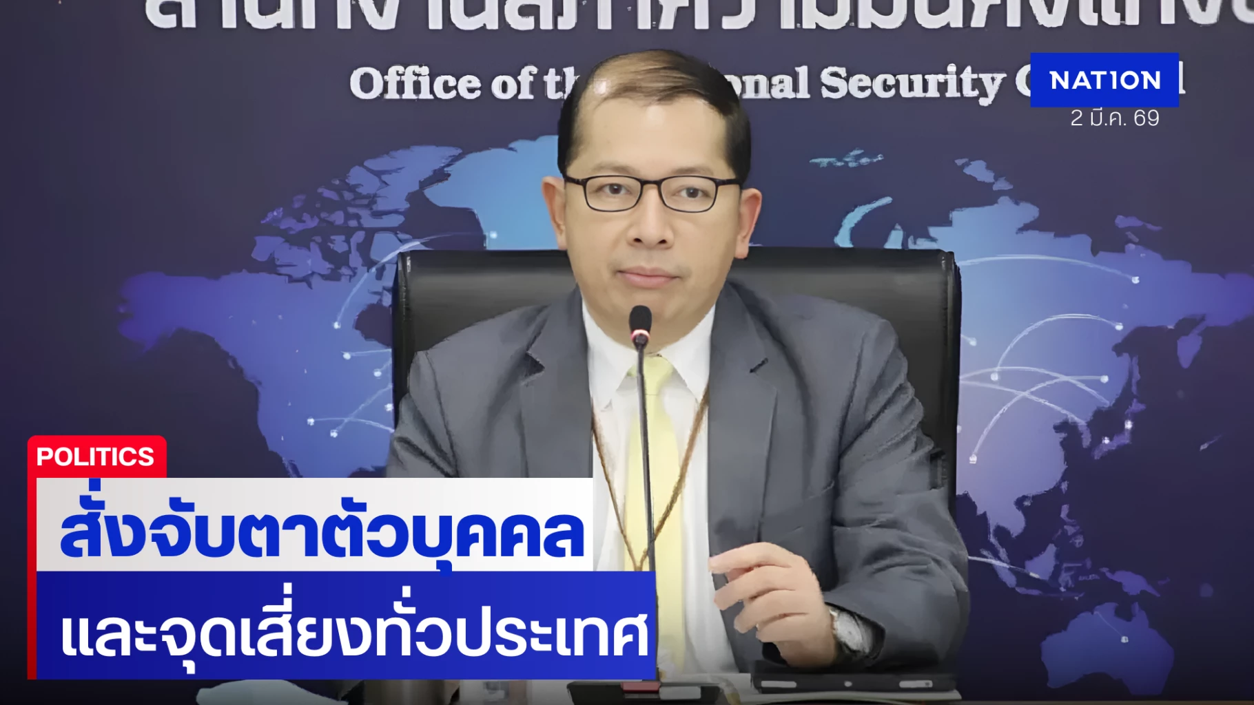 2 มีนาคม 2569 นายฉัตรชัย บางชวด เลขาธิการสภาความมั่นคงแห่งชาติ หรือ สมช. เปิดเผยถึงมาตรการภายในประเทศ ต่อสถานการณ์ในตะวันออกกลางว่า มติที่ประชุม สมช.ได้มอบหมายให้ฝ่ายตำรวจกับหน่วยงานด้านการข่าว ติดตามเฝ้าระวังในเชิงของสถานที่ของประเทศคู่ขัดแย้ง สถานเอกอัครราชทูต และบุคคลที่เกี่ยวข้องในเรื่องของกิจกรรมต่างๆ ซึ่งก็เป็นงานที่ดำเนินการ เตรียมการรองรับไว้แล้ว มีแผนชัดเจน