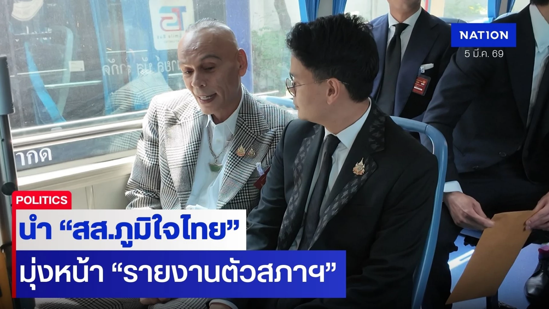 "ไชยชนก-ชาดา" นำ สส.ภูมิใจไทย ขึ้นรถบัส EV มุ่งหน้า รัฐสภาฯ สมทบ "อนุทิน" รายงานตัวต่อสภาฯ