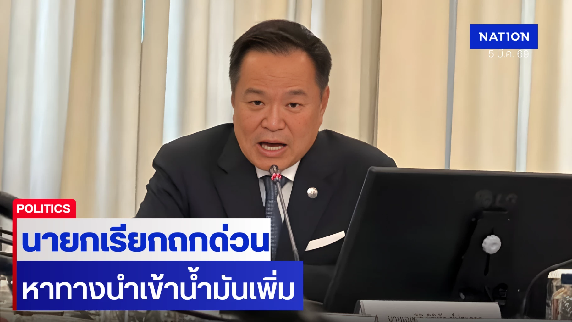 5 มีนาคม 2569 นายอนุทิน ชาญวีรกูล นายกรัฐมนตรี และรัฐมนตรีว่าการกระทรวงมหาดไทย เรียกหน่วยงานที่เกี่ยวข้องเข้าประชุมหารือ ติดตามสถานการณ์พลังงานภายในประเทศ หลังได้รับผลกระทบจากการสู้รบในภูมิภาคตะวันออกกลาง โดยมีนายพิพัฒน์ รัชกิจปราการ รองนายกรัฐมนตรีและรัฐมนตรีว่าการกระทรวงคมนาคม , นายสีหศักดิ์ พวงเกตุแก้ว รัฐมนตรีว่าการกระทรวงการต่างประเทศ , นายเอกนิติ นิติทัณฑ์ประภาส รัฐมนตรีว่าการกระทรวงการคลัง , นายอรรถพล ฤกษ์พิบูล รัฐมนตรีว่าการกระทรวงพลังงาน , นางมัลลิกา จิระพันธุ์วาณิช รัฐมนตรีช่วยว่าการกระทรวงคมนาคม , นายดนุชา พิชยนันท์ เลขาธิการ พัฒนาการเศรษฐกิจและสังคมแห่งชาติ , นายฉัตรชัย บางชวด เลขาธิการสภาความมั่นคงแห่งชาติ , นายปกรณ์ นิลประพันธ์ เลขาธิการคณะกรรมการกฤษฎีกา รวมถึงหน่วยงานที่เกี่ยวข้องเข้าร่วมประชุมอย่างพร้อมเพรียง