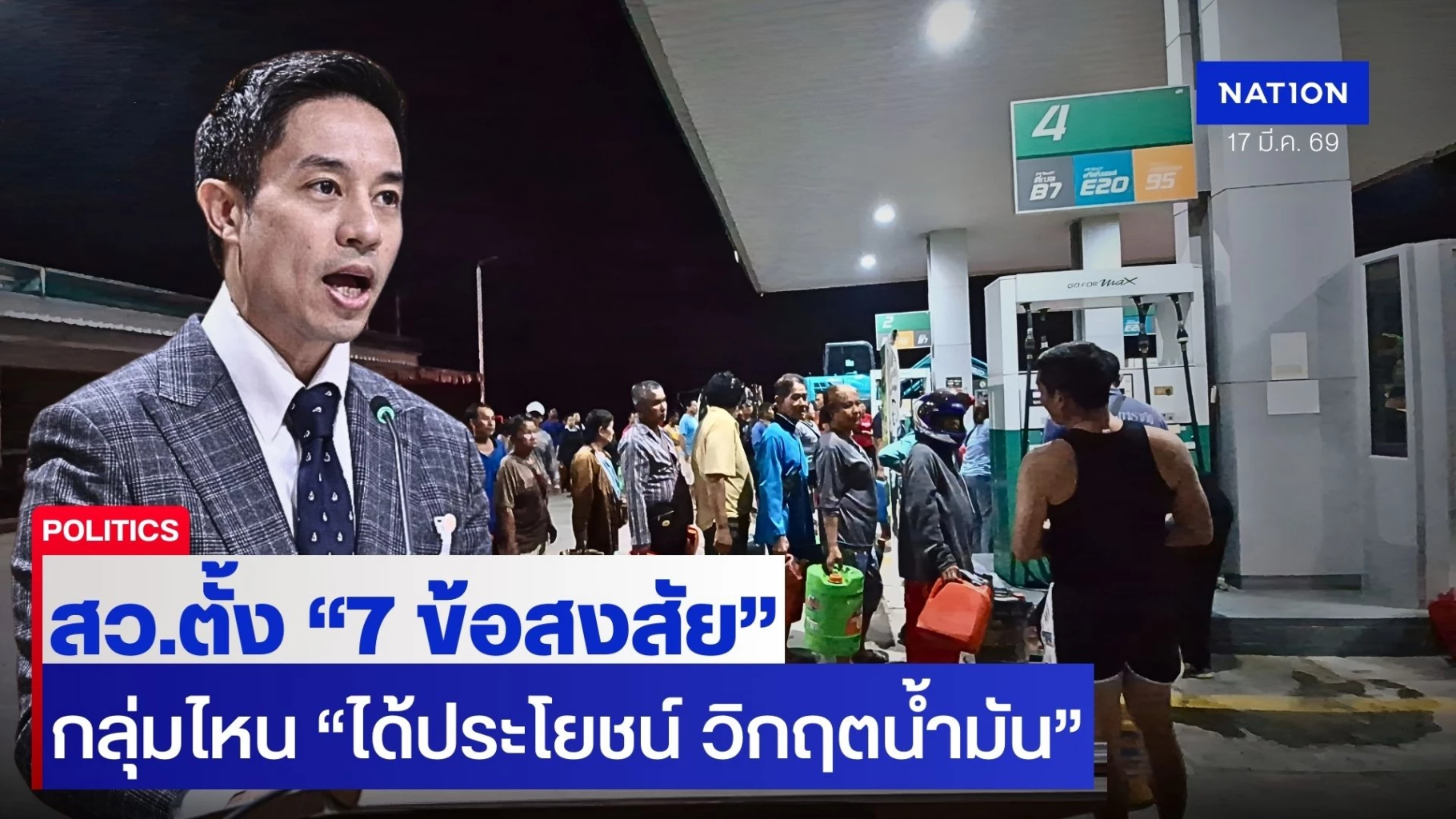 1. ประเทศไทยมีน้ำมันสำรองอยู่จริงเท่าไหร่กันแน่ เพราะตัวเลขที่ประกาศออกมาหลายครั้งไม่ตรงกันตั้งแต่ 60 วัน 90 วันหรือ 100 วัน และตัวเลขเหล่านี้เป็นสต๊อกของใครกันแน่ ของรัฐเท่าไหร่ของโรงกลั่นเท่าไหร่ และผู้ค้าน้ำมันเท่าไหร่