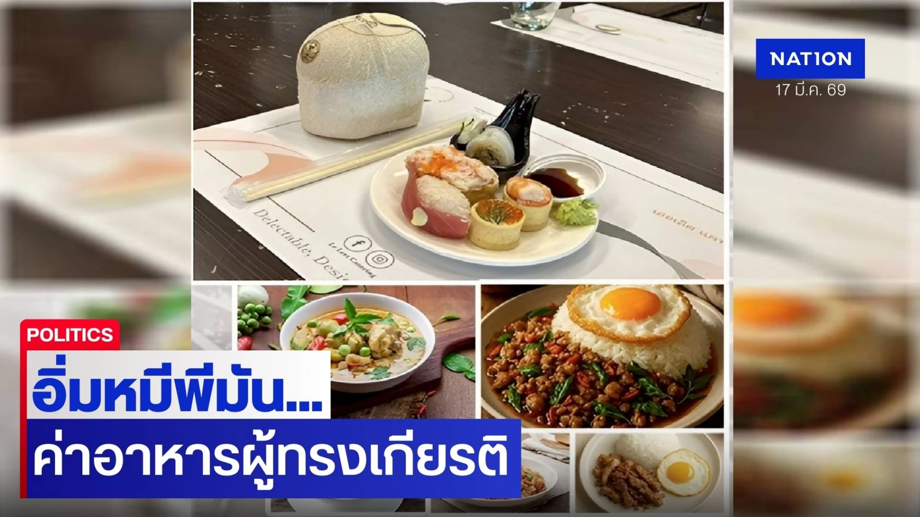 17 มีนาคม 2569 "ข่าวข้นคนข่าว" เคยรายงานก่อนหน้านี้ ว่างบประมาณ การจัดอาหารและเครื่องดื่มให้กับสมาชิกสภาผู้แทนราษฎรและสมาชิกรัฐสภาฯ ประจำปีงบประมาณ พ.ศ.2565 เป็นเงิน 87,880,000 บาท (แปดสิบเจ็ดล้านแปดแสนแปดหมื่นบาทถ้วน)