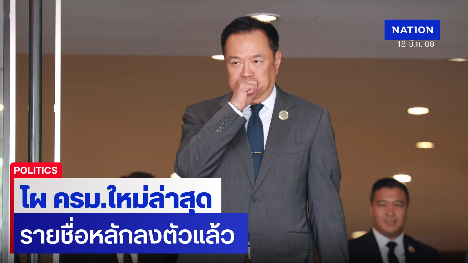 18 มีนาคม 2569 ความคืบหน้าการจัดตั้งคณะรัฐมนตรี (ครม.) ชุด “อนุทิน 2” มีความชัดเจนมากขึ้น โดยพรรคภูมิใจไทยได้เริ่มทยอยส่งรายชื่อบุคคลเข้าสู่กระบวนการตรวจสอบคุณสมบัติใน 18 หน่วยงาน รวมกว่า 40 รายชื่อ พร้อมบัญชีสำรองในกรณีมีผู้ขาดคุณสมบัติ
