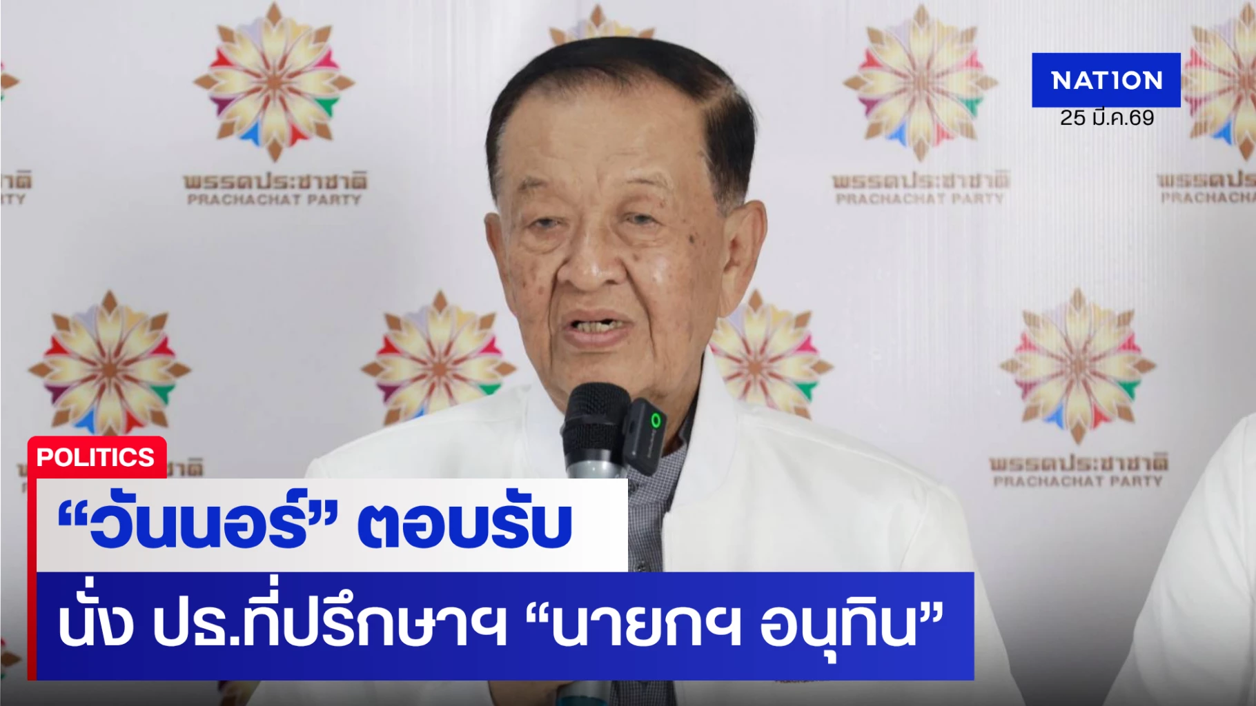 "อนุทิน" คอนเฟิร์ม! "วันนอร์" ตอบรับนั่งประธานที่ปรึกษานายกฯ