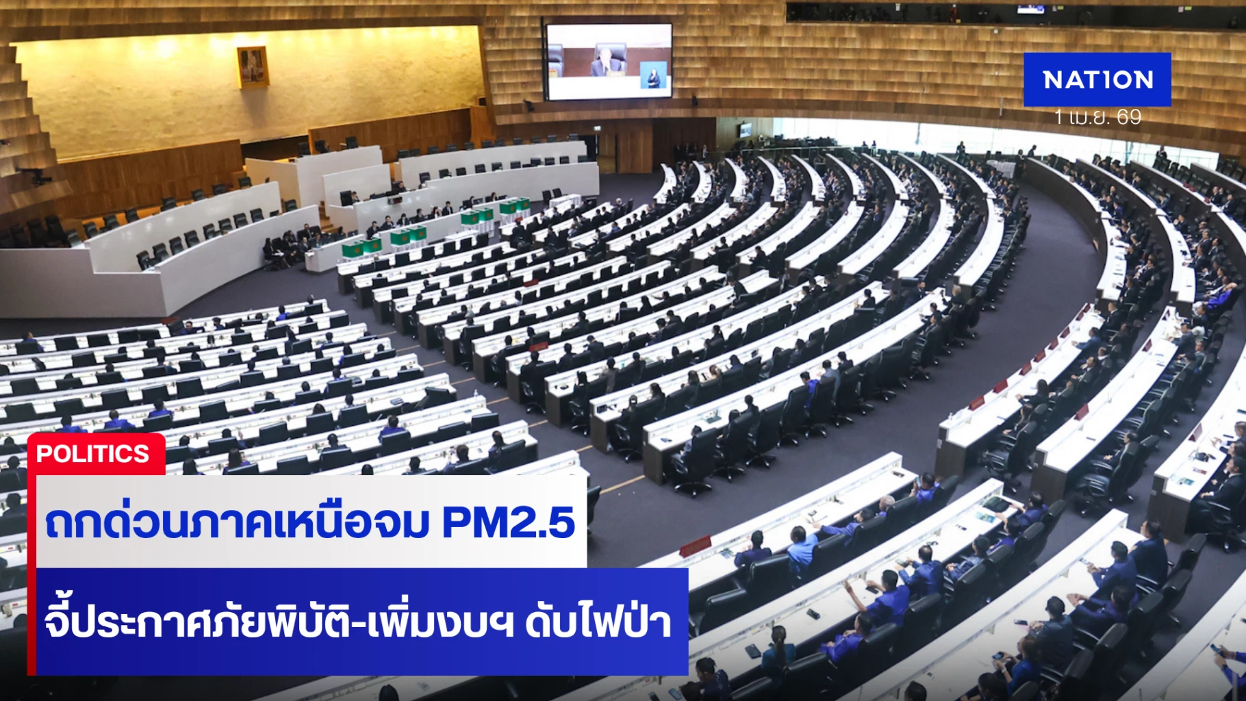การประชุมสภาผู้แทนราษฎร ในวันนี้ (1 เม.ย.) มีวาระสำคัญในการพิจารณาญัตติด่วนด้วยวาจา ที่แต่ละพรรคการเมืองเสนอ เพื่อส่งข้อเสนอแนะเร่งด่วนไปยังรัฐบาล เพื่อมีมาตรการและรับมือต่อความเดือดร้อนของประชาชน จากวิกฤตฝุ่น PM2.5 ในพื้นที่ภาคเหนือของไทย เพื่อเสนอเป็นข้อเสนอถึงรัฐบาล เพื่อพิจารณาดำเนินการแก้ไขปัญหาต่อไป