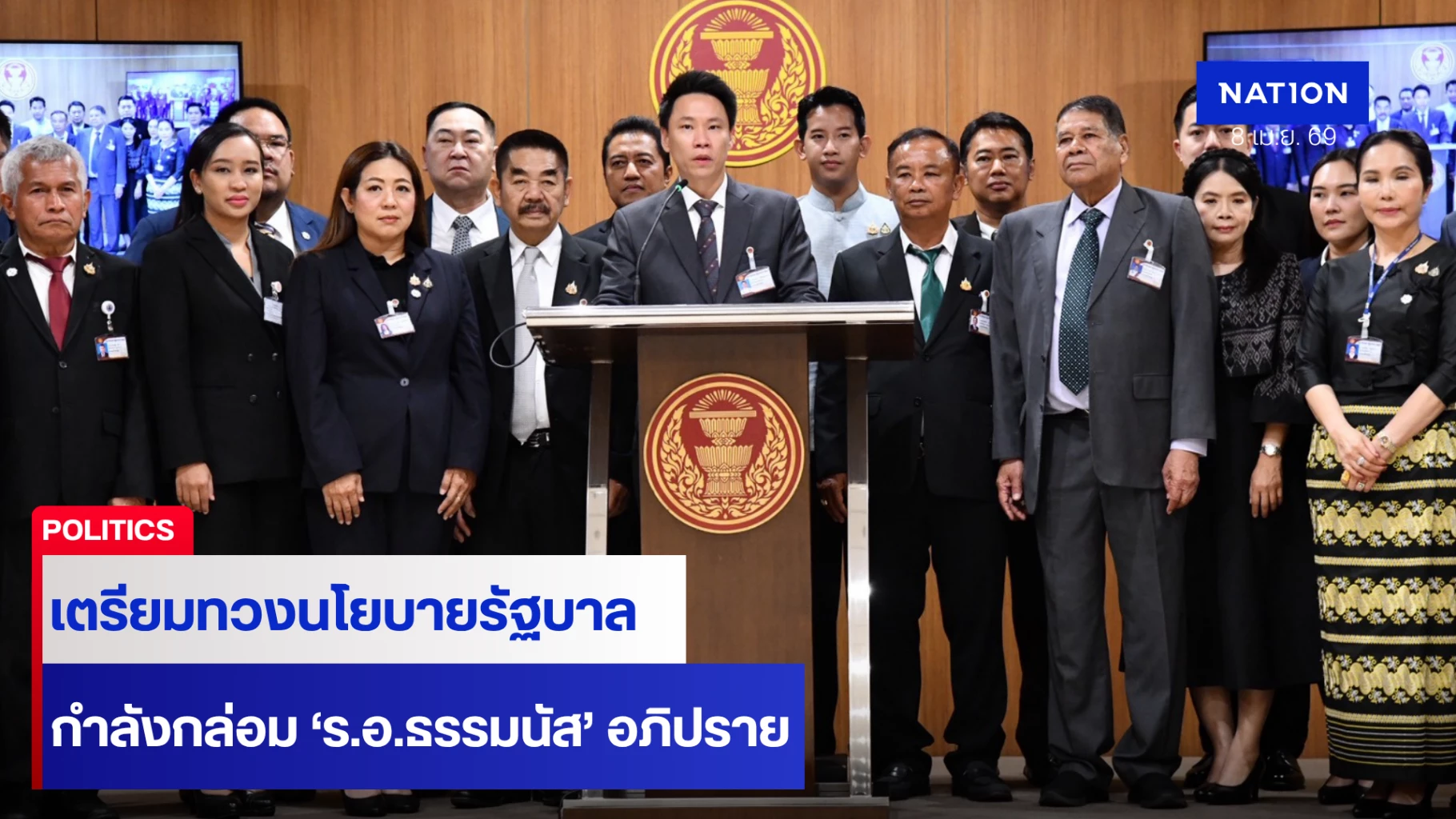 นายอรรถกร ศิริลัทธยากร สส.ฉะเชิงเทรา พรรคกล้าธรรม พร้อมด้วย สส.พรรคกล้าธรรม ย้ำถึงความพร้อมของพรรคกล้าธรรมในการเตรียมอภิปรายการแถลงนโยบายของรัฐบาลต่อรัฐสภาระหว่าง 9-10 เมษายนนี้ว่า พรรคกล้าธรรม ไม่ว่าจะเป็น สส.รัฐบาล หรือฝ่ายค้าน แต่ สส.พรรคกล้าธรรมทั้ง 58 คน มีความพร้อมในการทำหน้าที่ฝ่ายค้าน และขอให้ติดตามการทำหน้าที่ของ สส.พรรคกล้าธรรม ในการอภิปรายฯ ทั้ง 20 คน ที่ได้รับเวลาการอภิปราย 4 ชั่วโมงในการตรวจสอบ และทวงถามนโยบายต่าง ๆ ของรัฐบาล ที่พรรคร่วมรัฐบาลได้รับปากประชาชนไว้ ได้มีการทำตามสัญญาหรือไม่