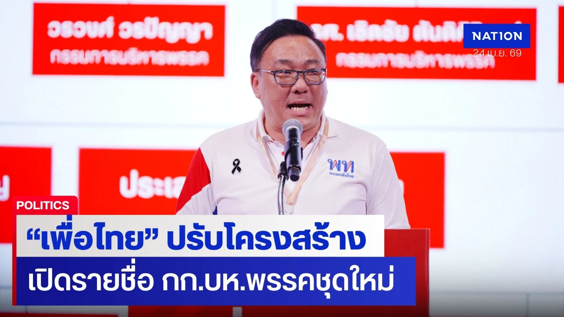 24 เมษายน 2569 นายจุลพันธ์ อมรวิวัฒน์ หัวหน้าพรรคเพื่อไทย แถลงสรุปผลการประชุมใหญ่สามัญประจำปีพรรคเพื่อไทย 2569 ว่า ที่ประชุมได้หารือประเด็นสำคัญต่อการขับเคลื่อนพรรคต่อไปข้างหน้า ที่สำคัญคือมีการแต่งตั้งกรรมการบริหารพรรคเพื่อไทย เพิ่มให้ครบจำนวน ตามข้อบังคับการประชุมพรรค คือ 29 คน เป็นการปรับโครงสร้างพรรคเพื่อรองรับการเติบโตไปข้างหน้าอย่างมั่นคง