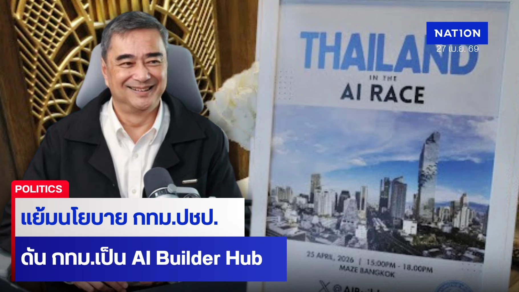 ประชาธิปัตย์ จัดเสวนา "Thailand in the AI Race" – “อภิสิทธิ์” แย้มนโยบายผู้ว่าฯ กทม.ปชป.ปักหมุดกรุงเทพฯ เป็น AI Builder Hub แห่งแรกของประเทศและภูมิภาค-ดึงการลงทุนระยะยาว