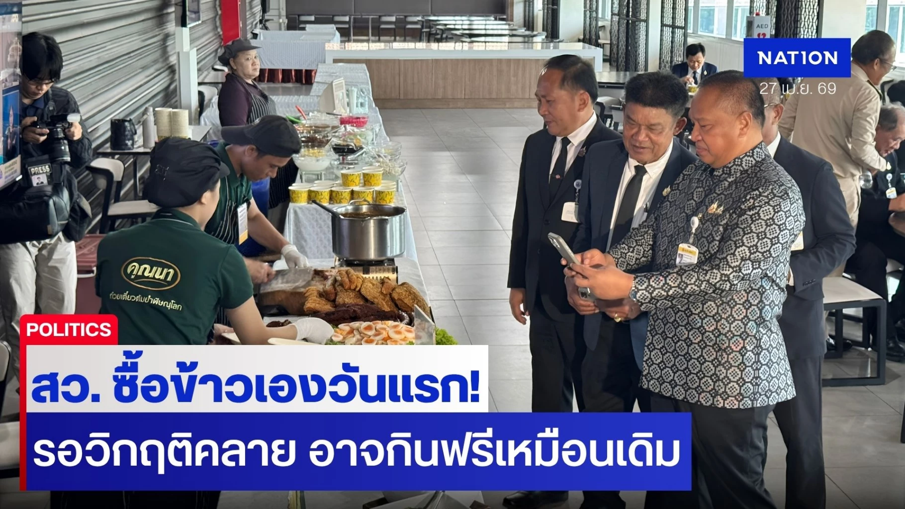 โดยย้ำว่าหากสถานการณ์วิกฤตคลี่คลาย อาจพิจารณากลับมาจัดบริการอาหารฟรีตามปกติเพื่อความสะดวกในการประชุม แต่ ณ เวลานี้ ทุกคนต้องร่วมมือกันเพื่อส่วนรวม