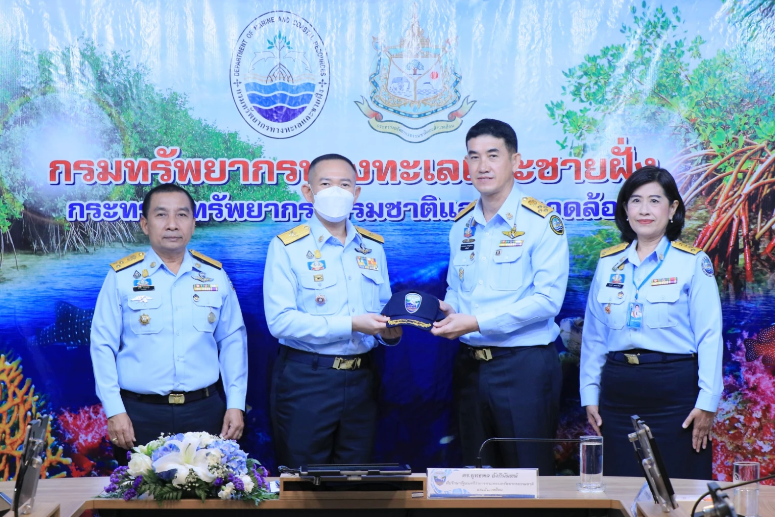โดย ศูนย์ปฏิบัติการพิทักษ์ทรัพยากรทางทะเลและชายฝั่ง (ศปพ.ทช.) มีหน่วยงานประกอบด้วย กลุ่มงานปฏิบัติราชการประจำศูนย์อำนวยการรักษาผลประโยชน์ทางทะเล (ศรชล.) กองป้องกันและปราบปราม ส่วนยุทธการ ส่วนพิทักษ์ทรัพยากร กรม ทช. มีเจ้าหน้าที่ชุดปฏิบัติการ จำนวน 386 ราย ภายใต้การกำกับดูแลของ รองอธิบดีกรมทรัพยากรทางทะเลและชายฝั่ง โอกาสนี้นายอรรถพล เจริญชันษา อธิบดีกรมทรัพยากรทางทะเลและชายฝั่ง (อทช.) นายอภิชัย เอกวนากุล รองอธิบดี ทช. ดร.พรศรี สุทธนารักษ์ รองอธิบดี ทช. นายไพรัตน์ สิทธิพล ผู้อำนวยการกองป้องกันและปราบปราม พร้อมด้วยคณะผู้บริหารระดับสูง จากส่วนกลาง และสำนักงานทรัพยากรทางทะเลและชายฝั่งที่ 1 – 10 ข้าราชการ และเจ้าหน้าที่กรมฯ เข้าร่วมในพิธี ณ ห้องประชุมลำแพน ชั้น 9 กรมทรัพยากรทางทะเลและชายฝั่ง