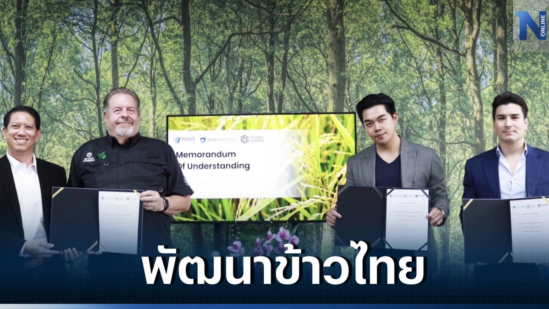 ซึ่งมี ดร. อัมรินทร์ ดรัณภพ ผู้อำนวยการฝ่ายกลยุทธ์และปฏิบัติการ Spiro Carbon Mr.David Rockwood ผู้ร่วมก่อตั้ง Spiro Carbon นายเจมส์ แอนดริว มอร์ ประธานเจ้าหน้าที่บริหาร WAVE และ นายธนนนท์ เตรียมชาญชัย ประธานเจ้าหน้าที่บริหาร Net Zero Carbon ประเทศไทย ร่วมลงนาม