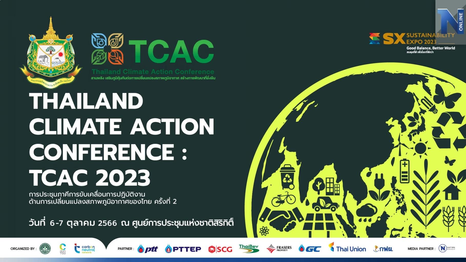 การประชุมภาคีการขับเคลื่อนการปฏิบัติงานด้านการเปลี่ยนแปลงสภาพภูมิอากาศของไทย ครั้งที่ 2 (Thailand Climate Action Conference: TCAC 2023) จัดขึ้นระหว่างวันที่ 6 - 7 ตุลาคม 2566 ณ ศูนย์การประชุมแห่งชาติสิริกิติ์ ผู้ที่สนใจเข้าร่วมงาน สามารถลงทะเบียนเข้างานได้ที่นี่ คลิก