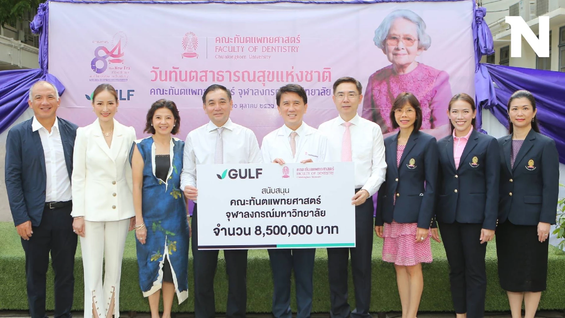 บริษัท กัลฟ์ เอ็นเนอร์จี ดีเวลลอปเมนท์ จำกัด (มหาชน) หรือ กัลฟ์ มอบงบประมาณจำนวน 8,500,000 บาท แก่คณะทันตแพทยศาสตร์ จุฬาลงกรณ์มหาวิทยาลัย สนับสนุนการออกหน่วยทันตกรรมเคลื่อนที่ ‘GULF Sparks Smiles’ และต่อยอดโครงการ เพื่อขยายขอบเขตการรักษาสู่กลุ่มเด็กพิเศษ และกองทุนอวัยวะเทียมสำหรับผู้บกพร่องทางช่องปากและใบหน้า โดยพิธีรับมอบจัดขึ้นในงานหน่วยทันตกรรมโครงการ “GULF Sparks Smiles มอบรอยยิ้มสดใสให้ชุมชน” ปี 3 หน่วยที่ 4 ที่ในครั้งนี้มาปิดจบ ส่งท้ายปีที่คณะทันตแพทยศาสตร์ จุฬาฯ เนื่องในโอกาสวันทันตสาธารณสุข โดยทางโครงการได้เสริมกำลังและเพิ่มศักยภาพในการรักษา ทำให้รองรับผู้มาเข้ารับบริการได้กว่า 1,058 คน แบ่งเป็นผู้ใหญ่ 930 คน และเด็ก 128 คน พร้อมเปิดโอกาสให้ประชาชนสามารถวอล์คอินมาลงทะเบียนเข้ารับบริการตรวจฟันได้ ทั้งอุดฟัน ถอนฟัน ขูดหินปูน เคลือบฟลูออไรด์ และผ่าฟันคุด พร้อมทั้งมีการให้ความรู้ด้านการดูแลสุขภาพฟัน โดยไม่เสียค่าใช้จ่าย