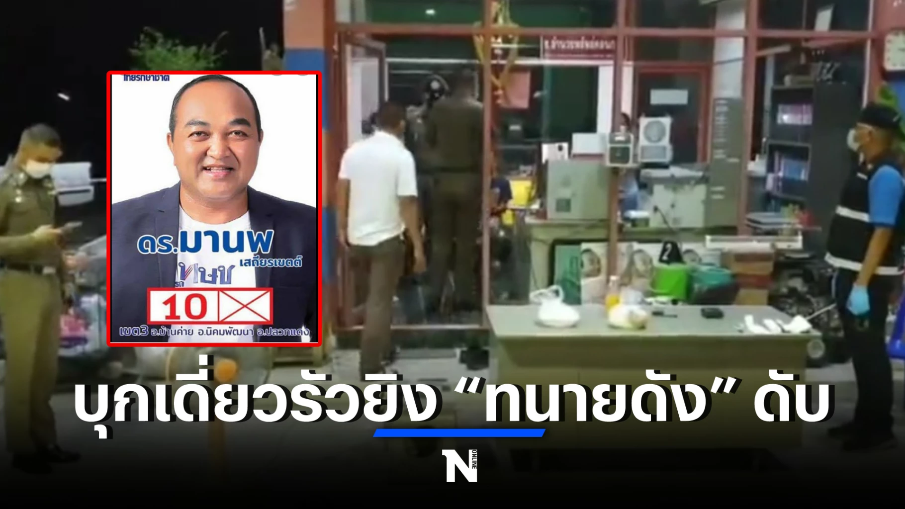 เมื่อไปถึงที่เกิดเหตุ ซึ่งเป็นปั๊มน้ำมัน พบเด็กปั๊มยืนออกันอยู่ด้วยความตื่นตระหนก เข้าไปตรวจสอบ พบรอยเลือดอยู่ตรงบริเวณโต๊ะบัญชี ที่ตั้งอยู่หน้าออฟฟิศ เลือดหยดเต็มพื้น และ รองเท้า ส่วนเหยื่อกระสุนเป็นเจ้าของปั๊ม ชื่อ นายมานพ เสถียรเขตต์ อายุ 49 ปี ทนายความชื่อดัง อดีตผู้สมัคร ส.ส.เขต3 พรรคไทยรักษาชาติ ถูกยิงเข้าที่ใบหน้าใต้ตาขวา 1 นัด และ ที่หน้าอก 2 นัด ได้ถูกนำตัวส่ง รพ.บ้านค่าย ไปก่อนแล้ว ซึ่งล่าสุดทนพิษบาดแผลไม่ไหวเสียชีวิตแล้ว ในที่เกิดเหตุพบกระจกออฟฟิศถูกกระสุนปืนแตกเป็นรู และ ยังพบรถยนต์มินิคูเปอร์ สีส้ม ทะเบียนฎฬ-300 กรุงเทพมหานคร ของผู้เสียชีวิตจอดอยู่ใกล้กับที่เกิดเหตุ