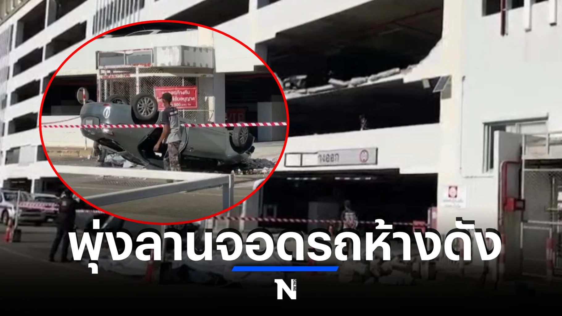 สวนยังที่เกิดเหตุพบ ที่ชั้นล่างลานจอดรถด้านหลังพบรถเก๋งวีออส ทะเบียน 4 กฌ 4050 กรุงเทพ อยู่ในสภาพผลิกหงายล้อขี้ฟ้า โดยมีเศษปูนกำแพงของอาคารจอดของชั้น 3 หล่นลงมาเกลื่อนพื้น โดยพบกำแพงมีรอยถูกชนเสียหายกว้างประมาณ 4 เมตร