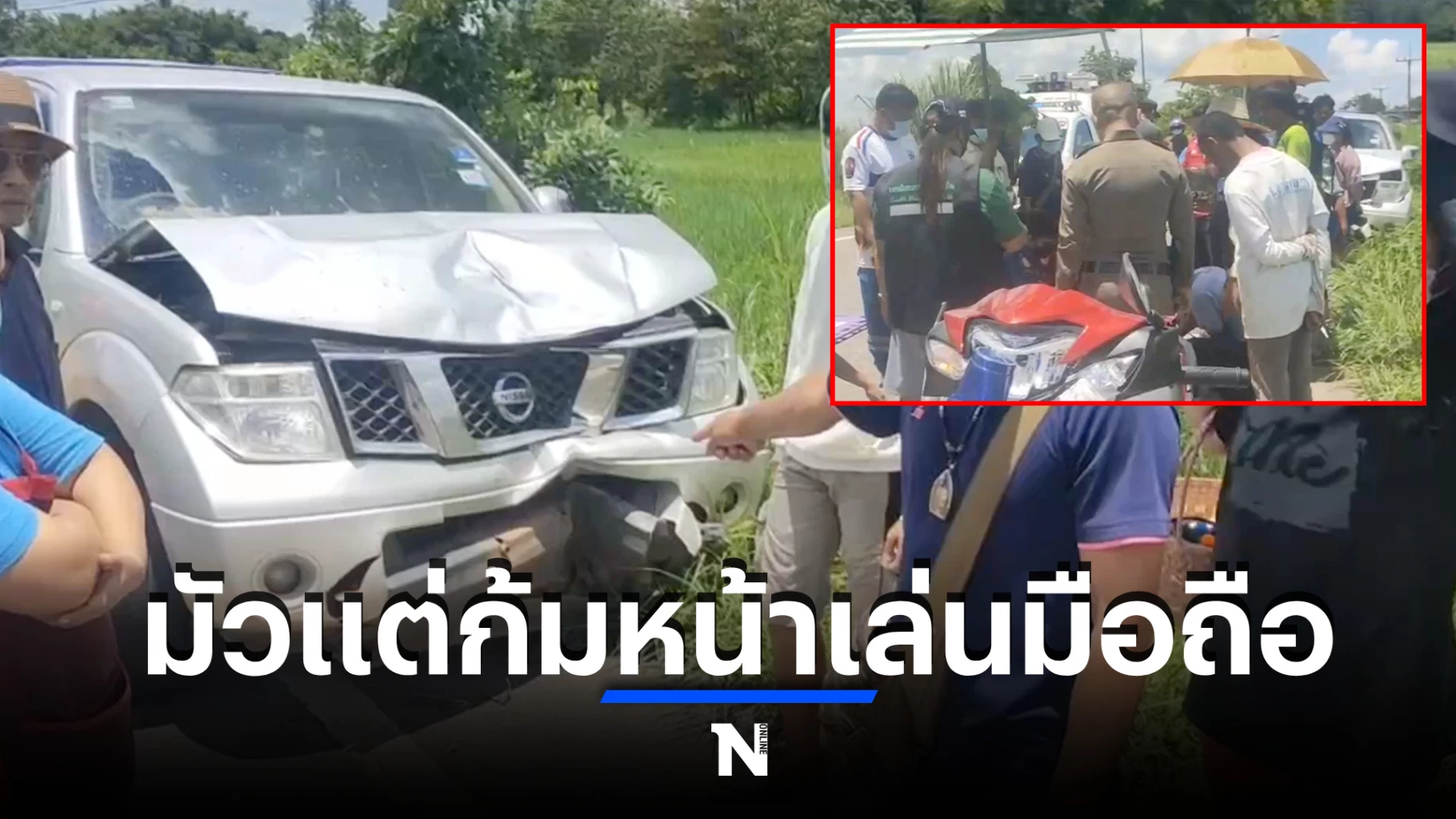 อุทาหรณ์ ! นักเรียน ม.2 ซิ่งจยย. ก้มหน้าเล่นมือถือ ชนปิกอัพดับสลด