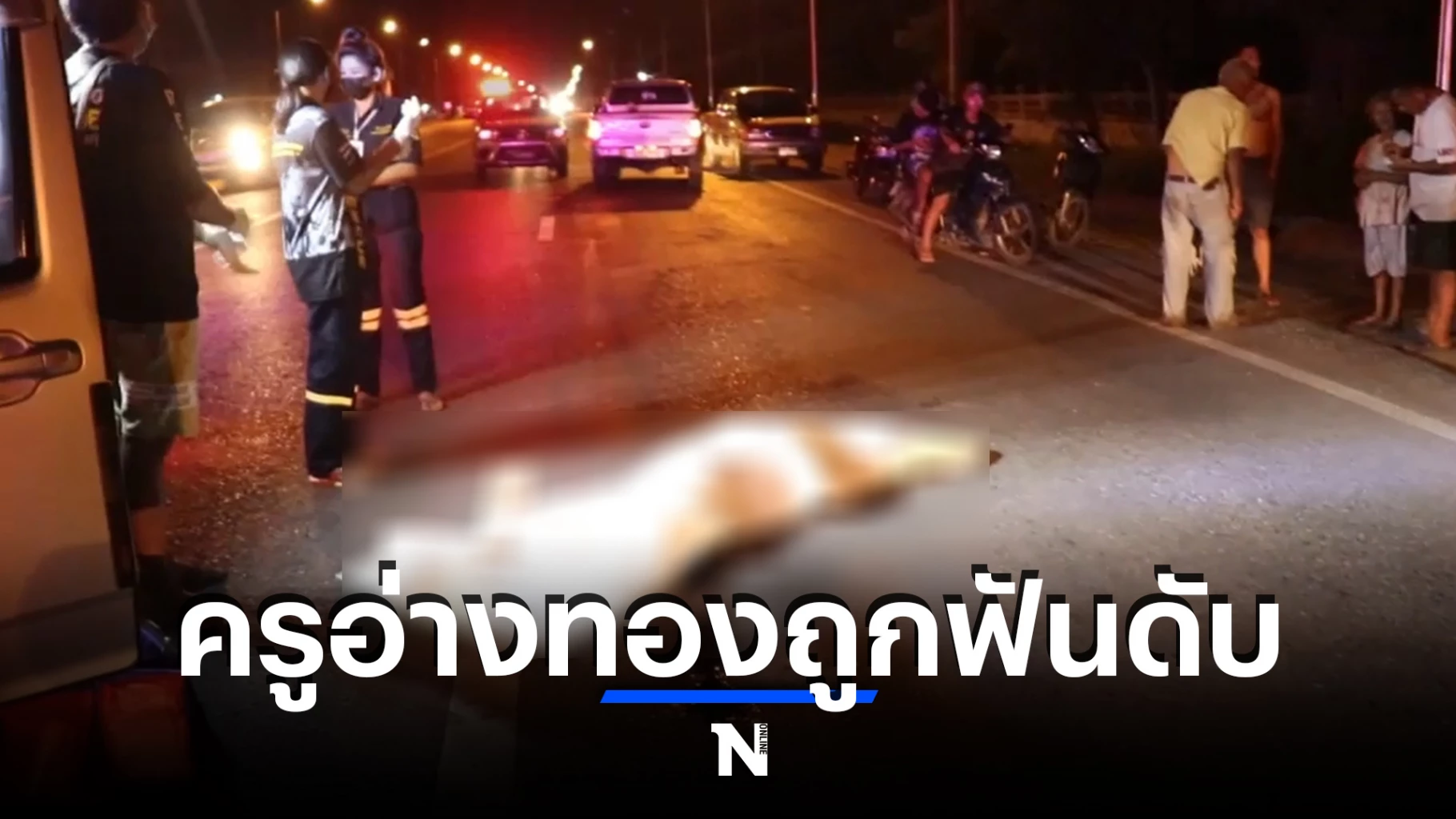 อ่างทอง – ผู้ข่าวรายงานว่า เมื่อเวลา 19.30 น. วันที่ 3 ก.ย. พ.ต.ท.นิสิต นิวรรณุสิต สารวัตรสอบสวน สภ.ป่าโมก ได้รับแจ้งเหตุมีผู้เสียชีวิต บริเวณถนนอ่างทอง - อยุธยา ตำบลบางปลากด อำเภอป่าโมก จังหวัดอ่างทอง จึงเดินไปที่เกิดเหตุพร้อมด้วยเจ้าหน้าที่ตำรวจชุดสืบสวน สภ.ป่าโมก แพทย์ พยาบาล โรงพยาบาลป่าโมก เจ้าหน้าที่สมาคมกู้ภัยจังหวัดอ่างทอง พบผู้เสียชีวิตเป็นชาย สวมเสื้อเชิตแขนสั้นสีฟ้า กางเกงขายาวสีดำ รองเท้าหนังสีดำ ที่บริเวณขาด้านขวามีบาดแผลถูกมีดฟันเป็นแผลยาวประมาณ 20 เซนติเมตร มีเลือดไหลนองเต็มพื้นถนน พบมีดพับ ตกอยู่ใกล้กับผู้เสียชีวิต ทราบชื่อต่อมา นาย ธเนศ สังข์ศิริ ครูโรงเรียนชื่อดังแห่งหนึ่งในจังหวัดพระนครศรีอยุธยา