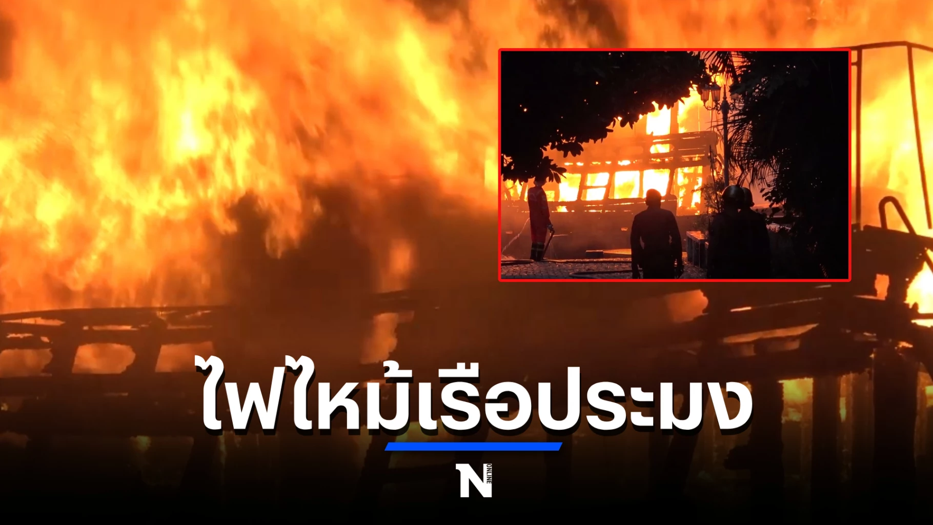 ไฟไหม้เรือประมงขนาดใหญ่ เพลิงโหมกระหน่ำ เสียหายทั้งลำ จนท.เร่งหาสาเหตุ