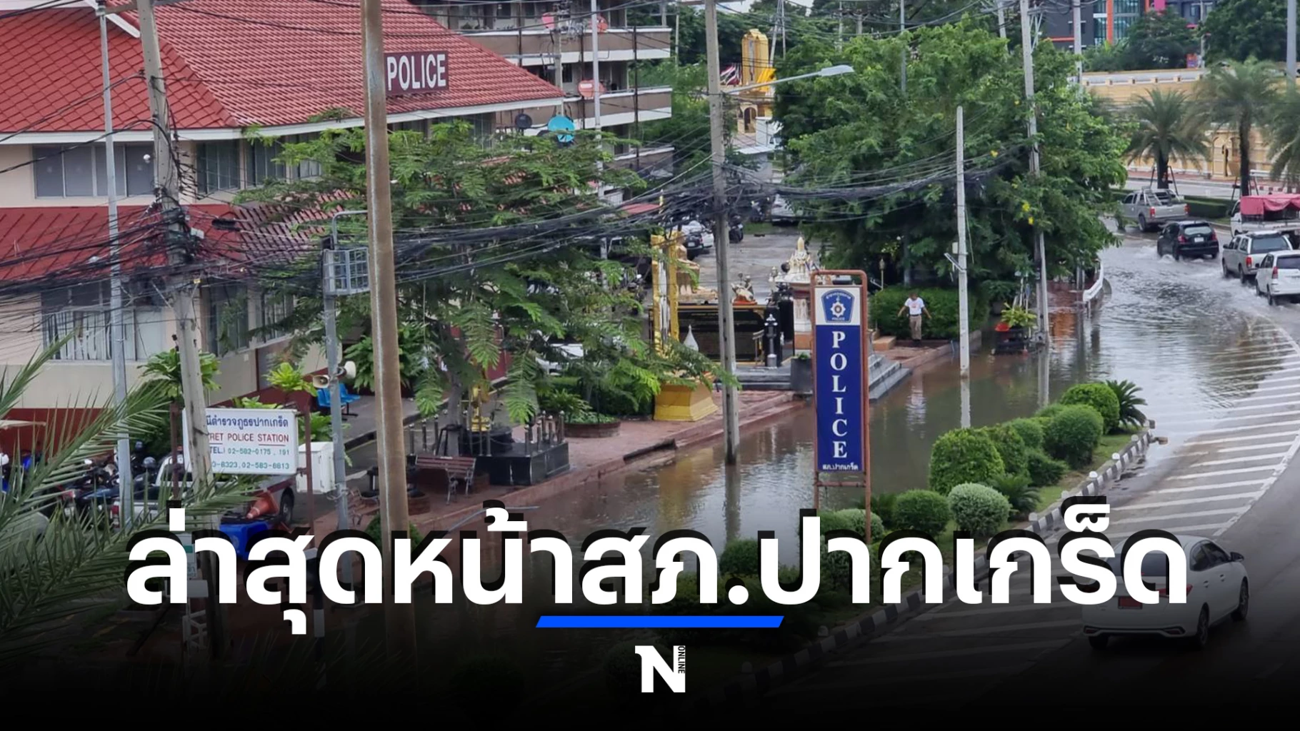 ล่าสุดวันนี้ ( 7 ก.ย.) ผู้สื่อข่าวลงพื้นที่ สภ.ปากเกร็ด พบว่าน้ำลดระดับลง การจราจรกลับเข้าสู่ภาวะปกติ โดยด้านหน้าโรงพักยังมีน้ำขังถนน 2 ช่องจราจร ซึ่งเป็นทางคู่ขนาน ระดับน้ำสูงประมาณ 20-30 ซม. ส่วนพื้นที่ลานจอดรถในโรงพัก น้ำลดลงหมดแล้ว