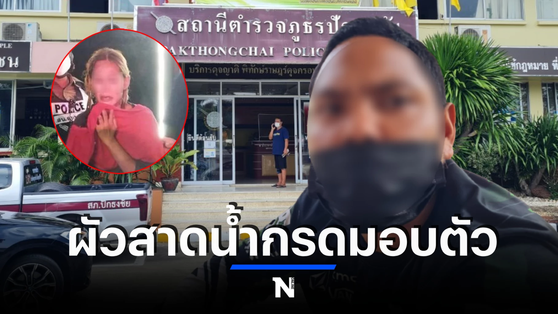 ก่อนเกิดเหตุได้ไปขอคืนดีกับฝ่ายหญิง และขอให้กลับมาดูแลลูกด้วยกัน แต่ตกลงกันไม่ได้ จึงเกิดความโมโหใช้น้ำกรดที่เตรียมไปด้วย สาดใส่ฝ่ายหญิง หลังก่อเหตุจึงได้หนีมาบ้านเกิดที่ อ.ปักธงชัย จ.นครราชสีมา และได้เอาลูกๆ ทั้ง 4 คน คนโตอายุ 5 ปี 4 ปี 3 ปี และ 1 ปี ตามลำดับ มาฝากไว้ให้แม่ของตนช่วยดูแล ก่อนที่จะตัดสินใจเข้ามอบตัวต่อเจ้าหน้าที่ตำรวจ ส่วนลูกอีก 1 คน ซึ่งเป็นลูกของชู้ฝ่ายหญิง อายุ 2 เดือน ได้ยกให้เป็นลูกบุญธรรมของผู้ใจบุญไปเลี้ยงแล้วตั้งแต่คลอด