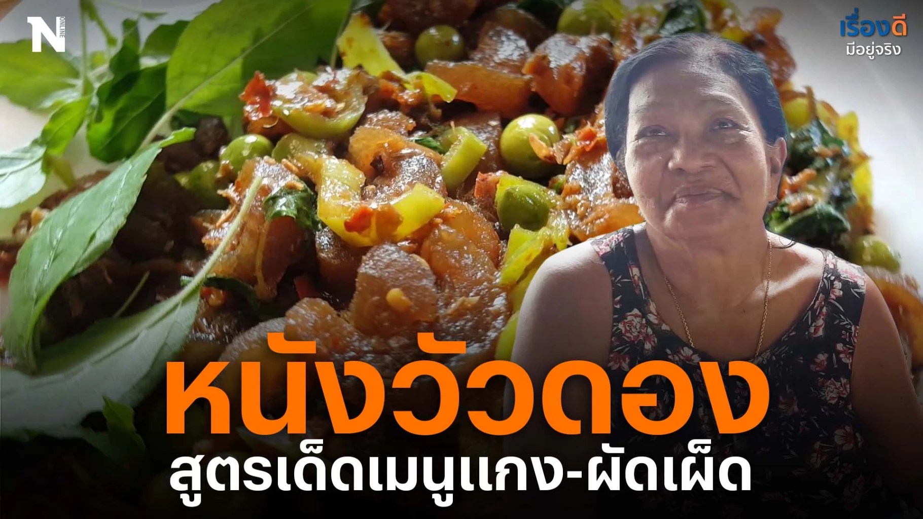 พอได้มาก็จะหั่นเป็นชิ้นสี่เหลี่ยมขนาดพอเหมาะ แล้วก็เอาไปใส่ถังดองเกลือนาน 3 เดือน หลังจากนั้นก็นำขึ้นมาเผาไฟ เสร็จแล้วก็เอามาใส่กระทะต้มน้ำต่ออีก 3 ชั่วโมง เพื่อให้หนังวัวนุ่ม ก่อนนำมาพักให้เย็น แล้วก็บรรจุใส่ถุงขายกิโลกรัมละ 160 บาท ลูกค้าส่วนมากจะชอบซื้อไปทำแกงและผัดเผ็ด บ้างก็ทำแกงขี้เหล็ก หรือยำ รสชาติอร่อย เคี้ยวนุ่มหนึบหนับ สนใจสั่งซื้อได้ที่เบอร์โทร 093-274-5359