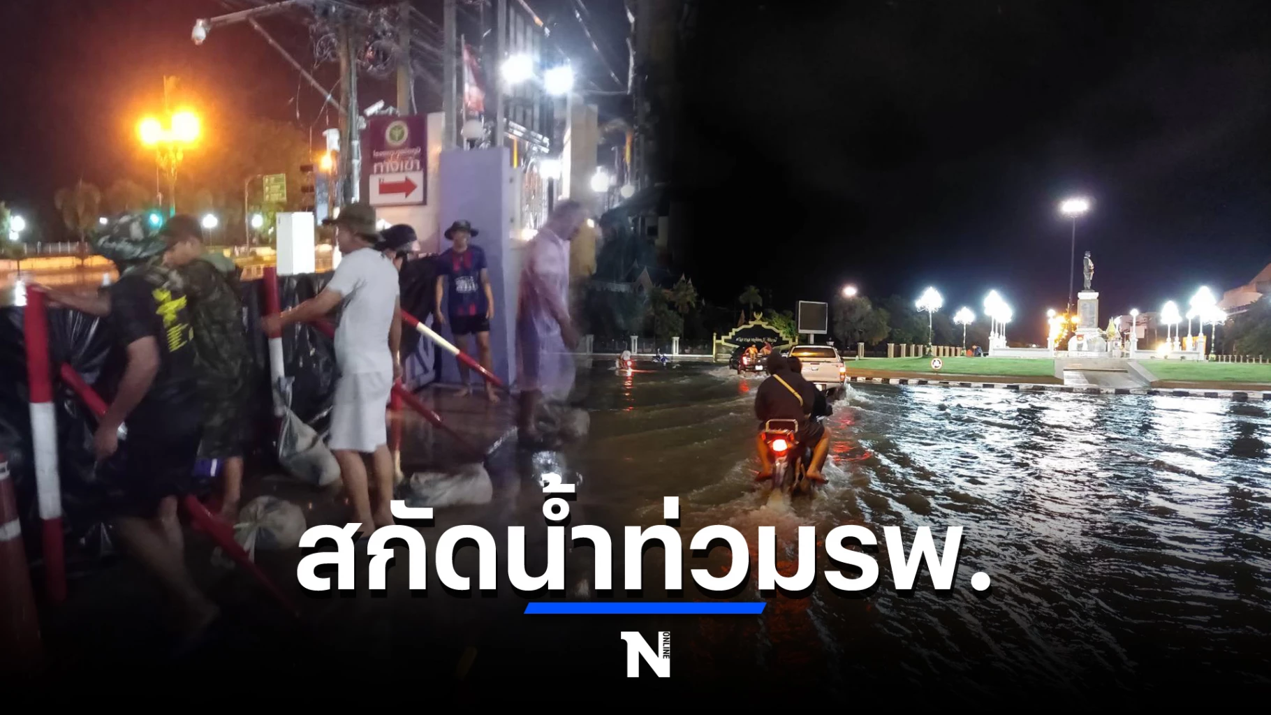 ชมคลิป : น้ำทะลักเข้าท่วม โซนศก.ชัยภูมิ เร่งป้องโรงพยาบาล ก่อน"พายุโนรู"ถล่ม