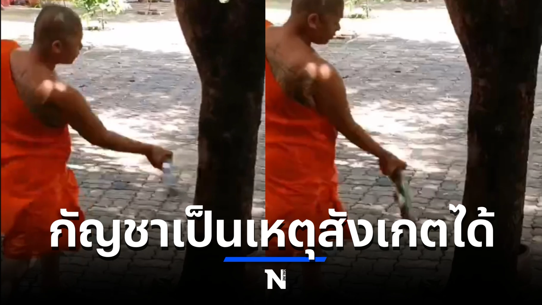 จากนั้น ผู้สื่อข่าวได้พบกับ พระพิษณุ ครุธรรมโม อายุ 63 ปี พระลูกวัด ซึ่งอยู่ในคลิปเหตุการณ์ โดยเป็นคนถือด้ามไม้ขนาดเล็กอยู่ในมือ พระพิษณุ เผยว่า เหตุการณ์นี้เกิดขึ้นเมื่อวันที่ 11 ก.ย. ที่ผ่านมา ช่วงเวลาก่อน 10 โมงเช้า ขณะที่ พระอนุรักษ์ นำบ้องกัญชาของเพื่อนเณร ที่แอบนำมาสูบในห้อง และถูกเจ้าอาวาสจับได้ ออกมาทำลายทิ้ง ด้วยการทุบกับต้นไม้ให้แตก ตามที่ได้รับปากกับเจ้าอาวาสวัดไว้ว่า จะไม่ให้เกิดเหตุการณ์ ที่มีเพื่อนเณรแอบมาสูบกัญชาในวัดแห่งนี้อีก หากพบทั้งเณรและพระอนุรักษ์ ซึ่งเป็นคนดูแลเณร จะต้องสึกออกจากวัดแห่งนี้ไปทั้งสองคน