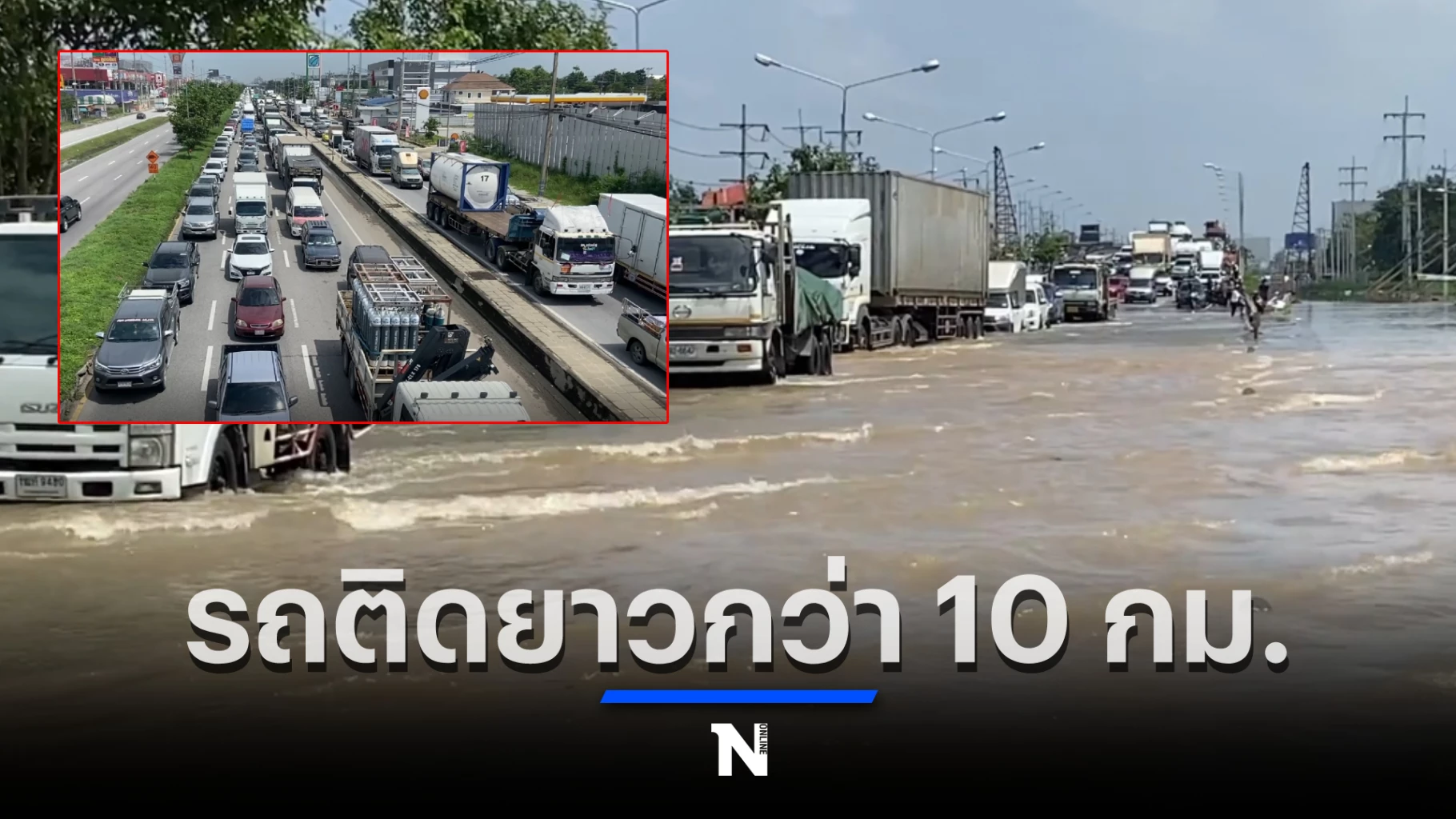 ส่วนอีกที่ที่ชาวบ้านได้รับผลกระทบคือ ช่วงสะพานข้ามแม่น้ำท่าจีน ถนนบรมราชชนนี ต.หอมเกร็ด อ.สามพราน จ.นครปฐม มีน้ำจากแม่น้ำท่าจีนไหลเอ่อขึ้นท่วมถนนบรมราชชนนีทั้ง2ฝั่งทั้งขาเข้ากรุงเทพฯและขาออกสู่จังหวัดนครปฐม ฝั่งขาออกมุ่งหน้านครปฐมน้ำท่วมเริ่มตั้งแต่ลงเชิงสะพานข้ามแม่น้ำท่าจีนระยะทาง1.5กม. ส่วนขาเข้ากรุงเทพฯมีน้ำท่วมขังตั้งแต่ถนนพุทธมณฑลสาย7 ไปจนถึงเชิงขึ้นแม่น้ำท่าจีน300เมตร ซึ่งมีความลึกตั้งแต่ 40-60ซม. รถสามารถวิ่งได้ช่องขวาช่องเดียว ส่วนถนนคู่ขนานลอดได้สะพานกลับรถไม่สามารถขับรถผ่านได้มีน้ำลึก1.50ม. วันนี้เป็นวันแรกที่น้ำทะลักเข้าท่วมถนนจึงส่งผลให้รถติดยาวกว่า10กม.ทั้งขาเข้าและขาออก น้ำจากแม่น้ำท่าจีนคาดว่าจะเพิ่มขึ้นสูงกว่านี้อีก
