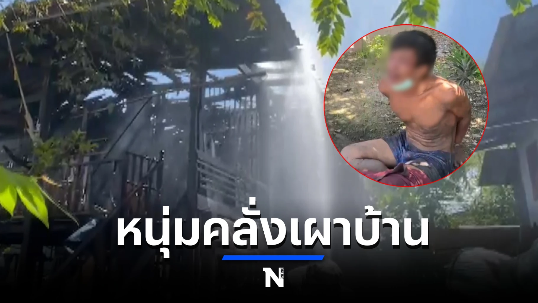 นางฉลวยเล่าให้ฟังว่านายณัฐสันต์เป็นหลานชายของตนซึ่งมีอาการป่วยทางจิตเวชช่วงนี้ไม่มียารับประทานโดยมารดาของนายณัฐสันต์กำลังไปติดต่อรับยาที่โรงพยาบาลใน กทม.จึงเกิดอาการกำเริบ เมื่อช่วงเช้าที่ผ่านก็เกิดอาการคลุ้มคลั่งอีกตนเองจึงไปโทรตามแม่ของนายณัฐสัต์ให้กลับมาแต่พอเดินออกมาที่หน้าบ้านรู้สึกมีอะไรร้อนๆอยู่ใต้ถุนบ้านจึงลงมาดูก็พบว่านายณัฐสันต์จุดไฟเผาที่ใต้ถุนบ้าน ตนเองก็พยายามไปเอาสายฉีดน้ำมาฉีดแต่นายณัฐสันต์ก็ไม่ยอมเดินไปปิดอีกจนกระทั่งชาวบ้านไปช่วยอุ้มออกจากตัวบ้านมาอยู่ด้านนอก