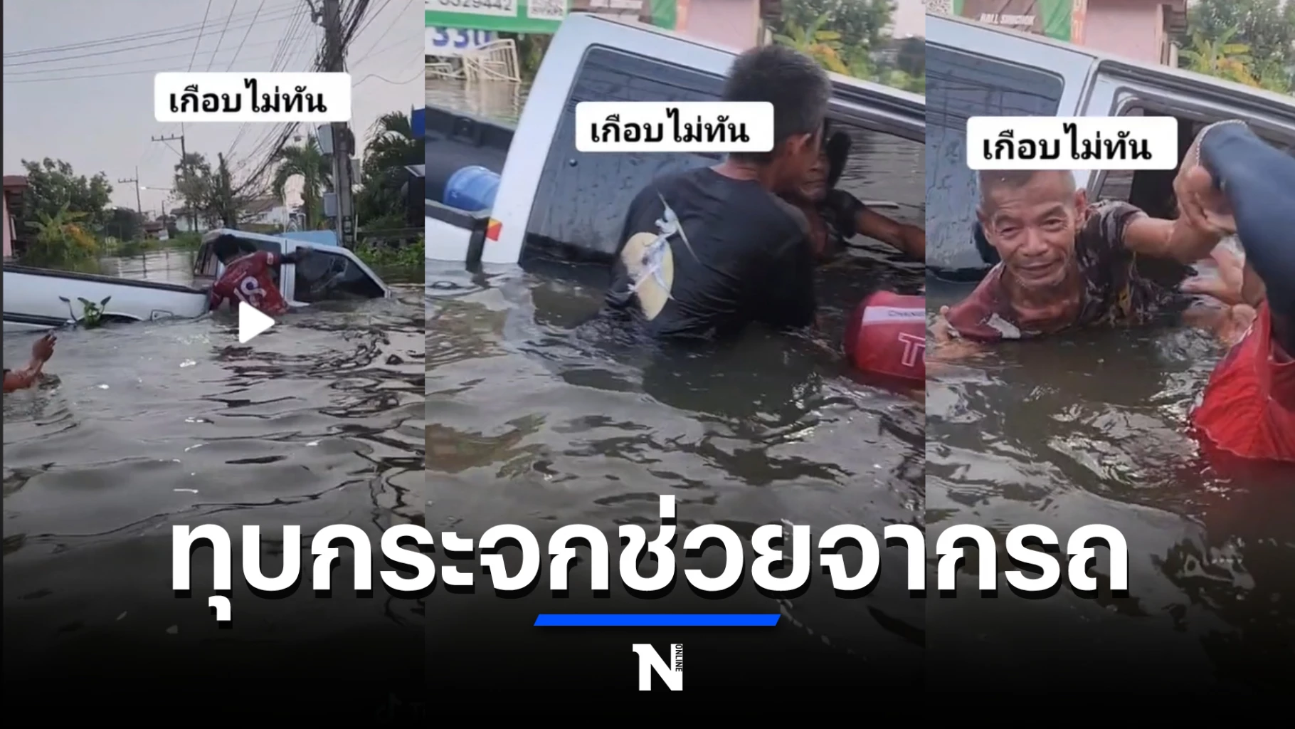อย่างไรก็ตาม เจ้าหน้าที่ได้ใช้เหล็กทุบกระจกรถจนแตก ก่อนเปิดประตู และดึงตัวคุณลุงคนดังกล่าวออกจากจุดเกิดเหตุ ได้ทันเวลา โดยถนนสายดังกล่าวมีน้ำท่วมสูง ประมาณ 50 - 80 เซนติเมตร