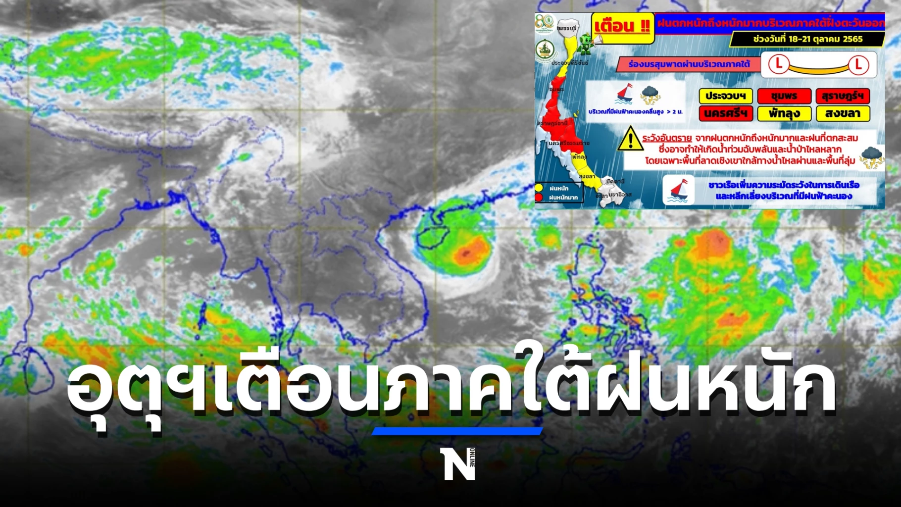 18 ตุลาคม 2565 ศูนย์อุตุนิยมวิทยาภาคใต้ฝั่งตะวันออก ประกาศฉบับที่ 1 (24/2565) เรื่อง ฝนตกหนักถึงหนักมากบริเวณภาคใต้ฝั่งตะวันออก (มีผลกระทบช่วงวันที่ 18-21 ตุลาคม 2565) ร่องมรสุมพาดผ่านภาคใต้ตอนกลาง เข้าสู่หย่อมความกดอากาศต่ำกำลังแรงบริเวณทะเลอันดามันตอนบน ลักษณะเช่นนี้ทำให้ภาคใต้ฝั่งตะวันออกมีฝนตกชุกต่อเนื่องและฝนตกหนักถึงหนักมากบางแห่ง ในช่วงวันที่ 18-21 ตุลาคม 2565 โดยส่งผลกระทบ ดังนี้