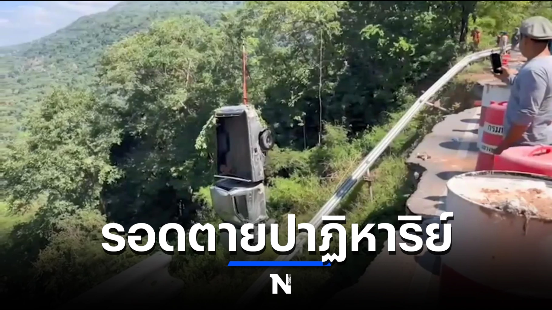 กระบะเบรกแตกพุ่งตกเขา "ผาเกิ้ง" คนขับรอดตายปาฏิหาริย์