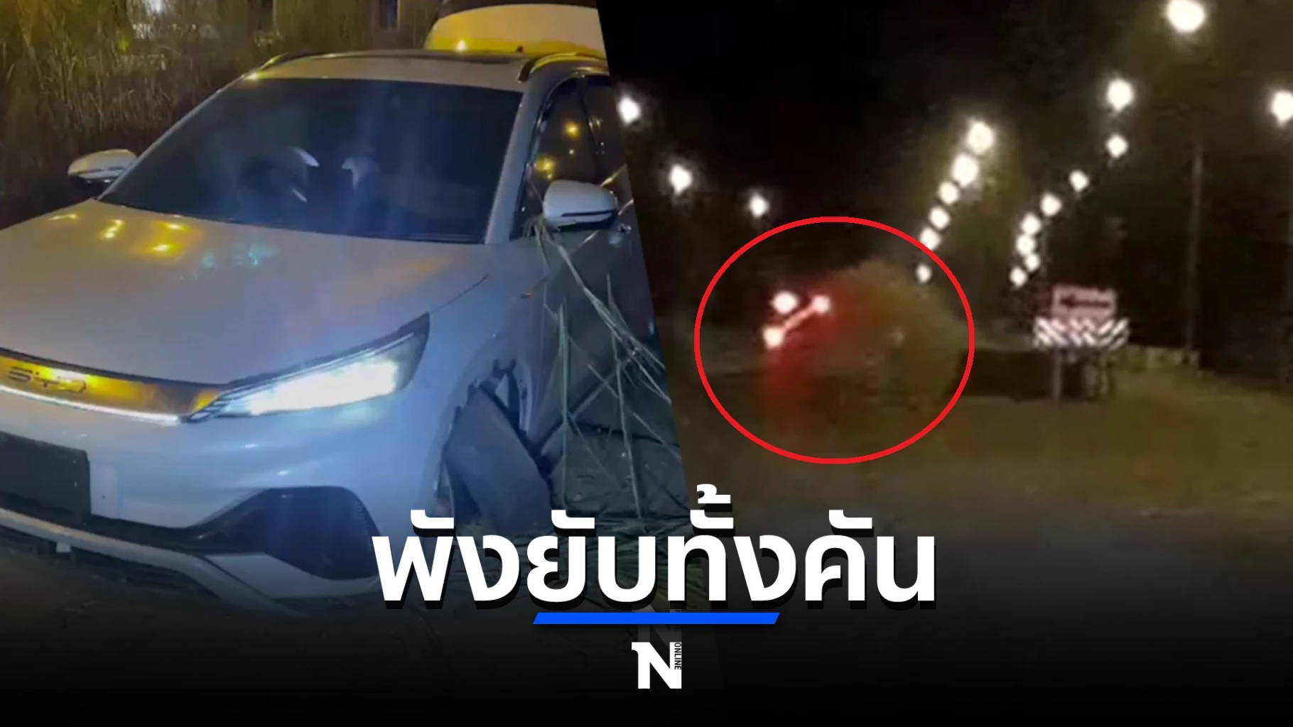 ชมคลิป : วินาทีเฉียดตาย รถยนต์ไฟฟ้าพุ่งชนแท่นแบริเออร์กลางถนน