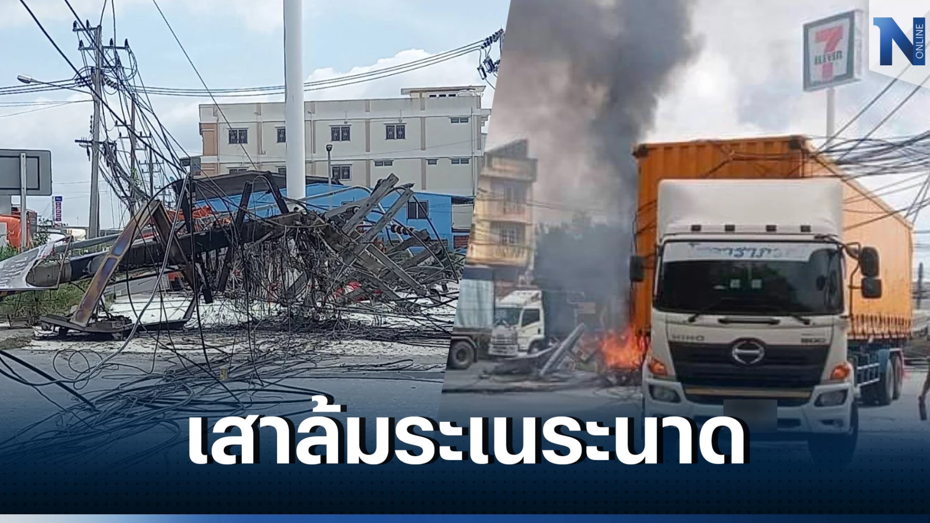 ที่เกิดเหตุพบรถบรรทุกพ่วง ยี่ห้อฮีโน่ สีขาว จอดขวางถนน บริเวณด้านหลังรถมีตู้คอนเทนเนอร์ มีสายไฟฟ้าแรงสูงและสายสื่อสาร พันอยู่ นอกจากนี้ยังมีไฟกำลังลุกไหม้อย่างรุนแรง เจ้าหน้าที่ดับเพลิงเร่งฉีดสารเคมีใส่สายไฟ เพื่อสกัดไม่ให้ลุกลาม ใช้เวลานานกว่า 2 ชั่วโมง จึงควบคุมเพลิงไว้ได้ โดยขณะเกิดเหตุส่งผลให้การจราจรติดขัด เป็นระยะทางยาวกว่า 2 กิโลเมตร
