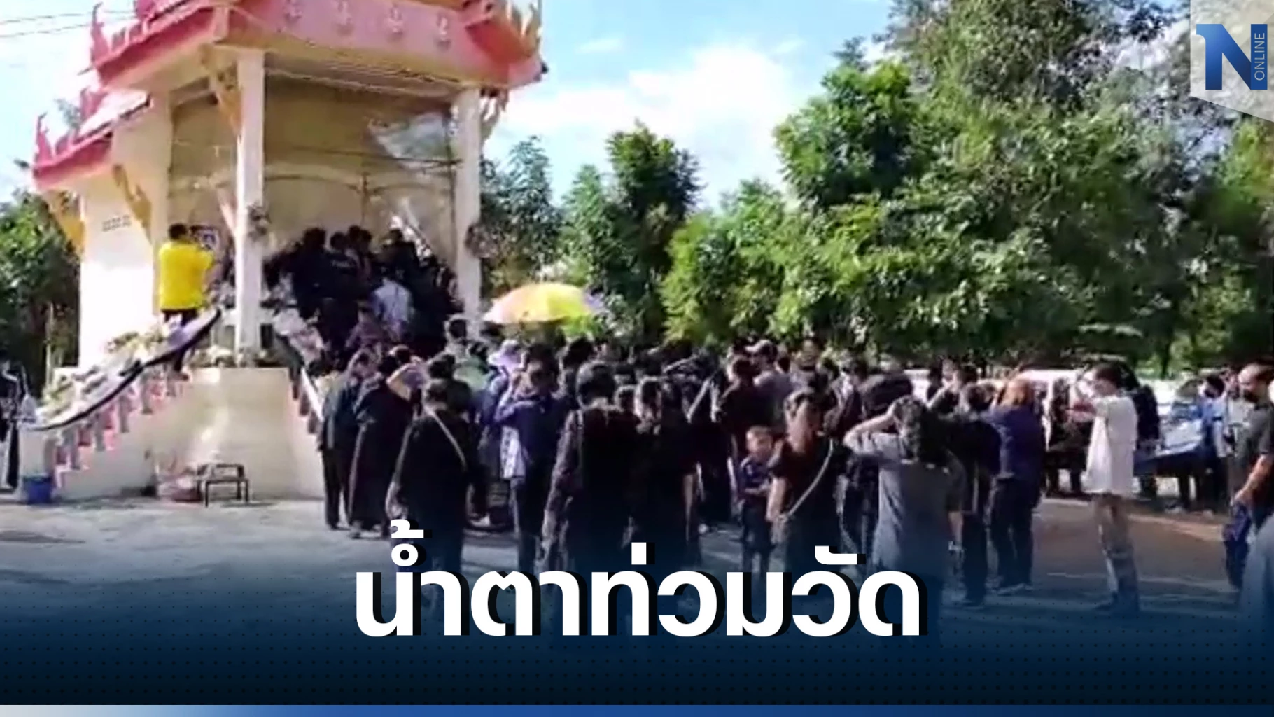 จากนั้นญาติได้อ่านประวัติผู้ตาย ผู้มาร่วมงานได้วางดอกไม้จันทน์ ก่อนที่นายกเทศมนตรีเทศบาลตำบลนากลาง จะขึ้นถวายพระไตรบังสกุล และประชุมเพลิง ขณะที่ญาติ ๆ รวมถึงพ่อกับแม่กลั้นน้ำตาไม่ไหวที่ต้องมาเผาศพลูกชาย ซึ่งจบชีวิตราชการก่อนวัยอันควร