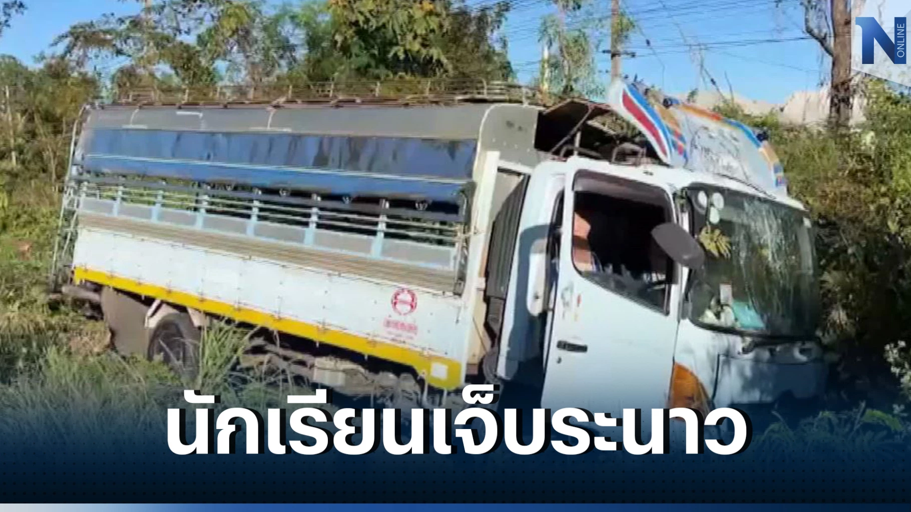 คนขับหลับใน! รถ 6 ล้อ รับส่งนักเรียน เสียหลักพุ่งตกข้างทาง บาดเจ็บกว่า 10 คน