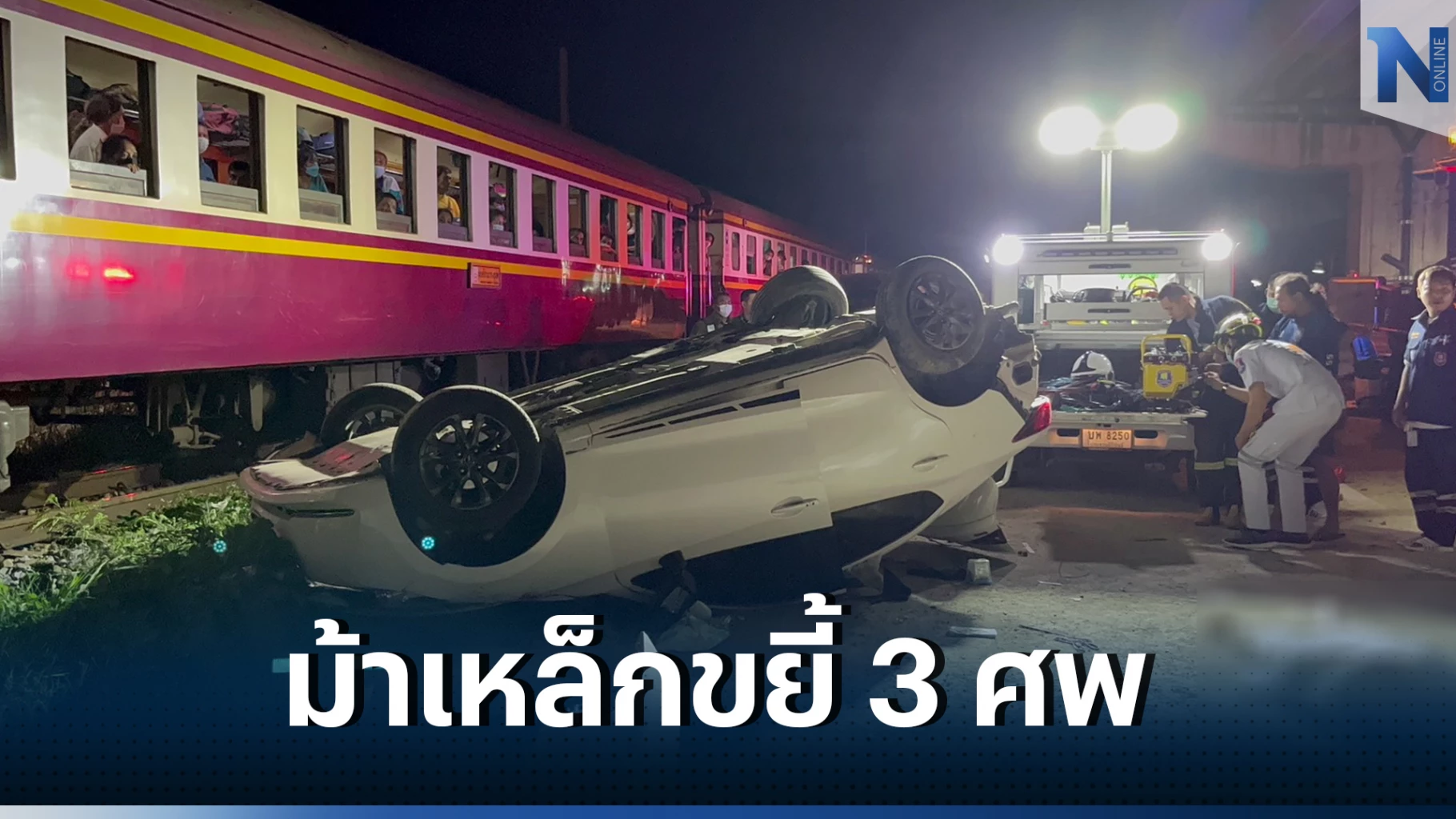 "ม้าเหล็ก" ขยี้ดาบตำรวจ ซิ่งเก๋งฝ่าไม้กั้นทางรถไฟ ดับ 3 ศพ