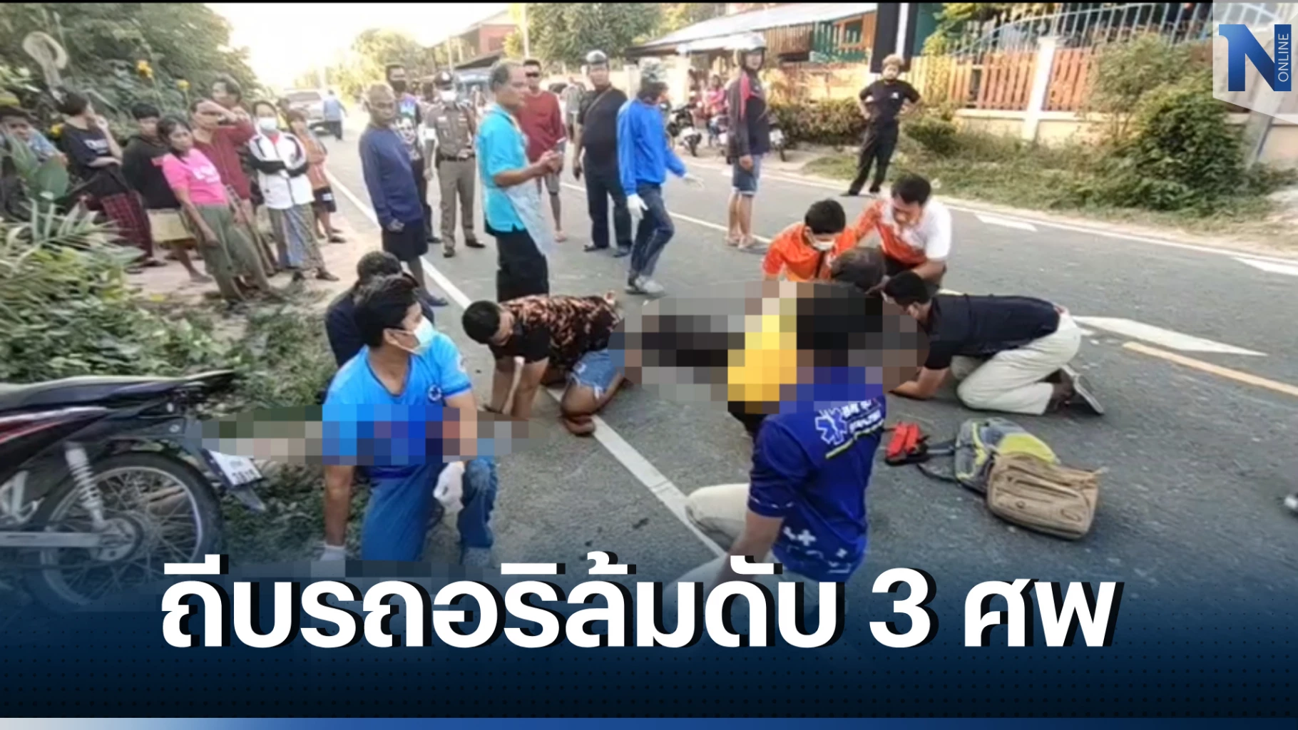ที่เกิดเหตุเจ้าหน้าที่พบรถจักรยานยนต์ฮอนด้าเวฟ 110 i สีแดงดำ ชนล้มอยู่กับเสาไฟฟ้า บนถนนมีผู้เสียชีวิต 3 ราย ทราบชื่อ 1.ด.ช.พงศกร อายุ 15 ปี 2.ด.ช.วิศิษฎ์ อายุ 14 ปี 3.ด.ช.พิชญะ อายุ 14 ปี