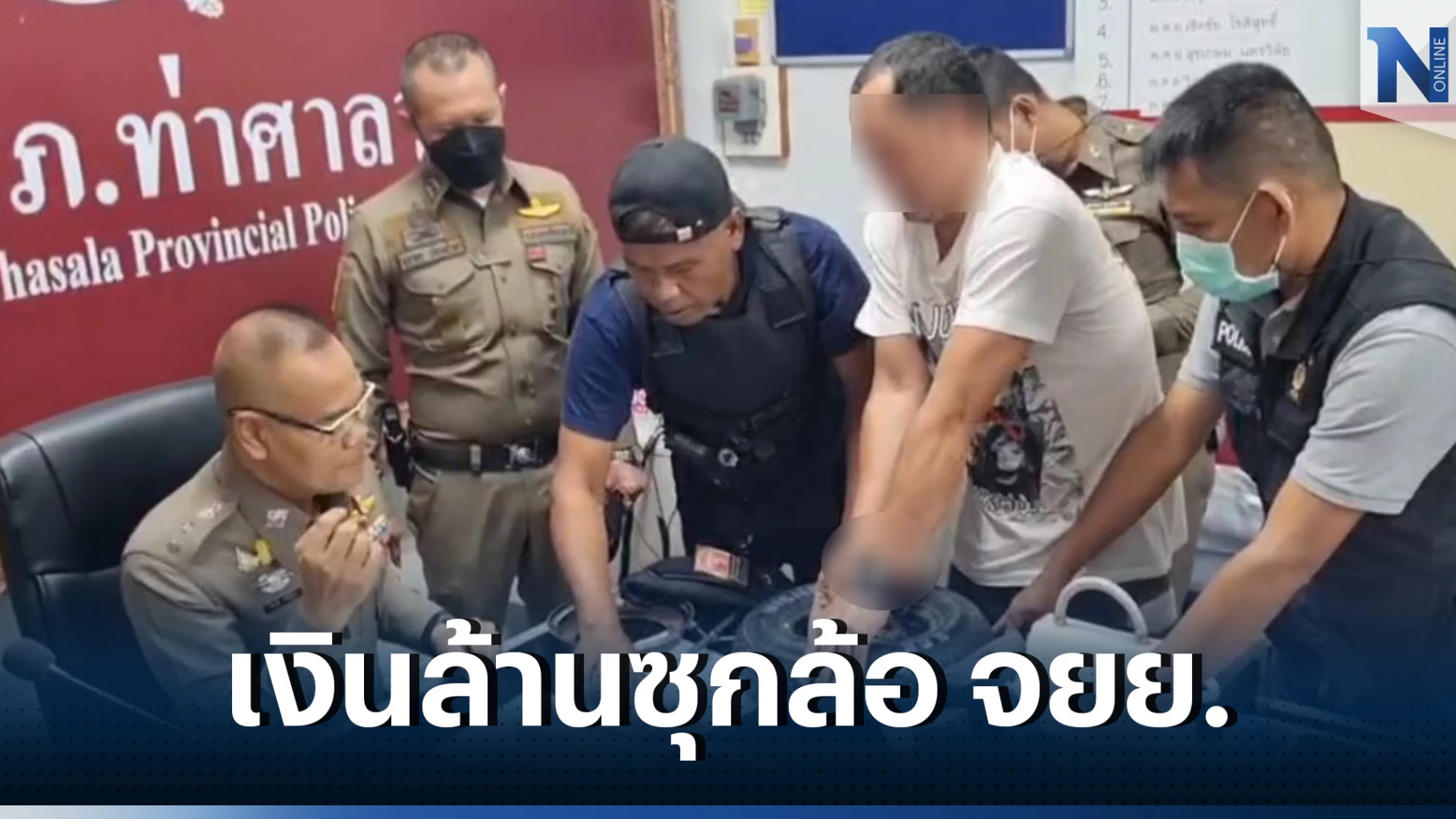 ยึดของกลางยาบ้า 129 เม็ด ไอซ์ 24.4 กรัม ซุกซ่อนในถ้วยรางวัลฟุตบอล และอาวุธปืนขนาด .45 มม. 1 กระบอก กระสุน 19 นัด แม็กกาซีน 9 มม. 2 อัน นอกจากนี้ตำรวจชุดดังกล่าวยังตาไว เห็นล้อรถ จยย.คันหนึ่ง ที่จอดในบ้าน ไม่เหมือนล้อรถ จยย.ทั่วไป ผลการตรวจค้นพบ เงินสด 1,398,000 บาท อัดแน่นอยู่ในล้อรถ จยย. จึงทำการตรวจยึดยาเสพติดและของกลางทั้งหมด ส่งพนักงานสอบสวน สภ.ท่าศาลา