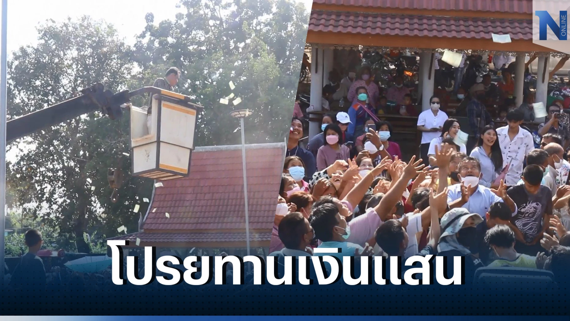 ทั้งนี้ นายวะสัน บรรเจิดศิลป์ สมาชิกองค์การบริหารส่วนจังหวัดสมุทรปราการ ซึ่งเป็นลุงของนาคอั๋น ได้นำธนบัตรชนิด 20 บาท ใส่เครื่องพ่นเงินโปรยทานตลอดทางของขบวนแห่ ในระยะทาง กว่า 2 กิโลเมตร จนทำให้ชาวบ้านผู้ร่วมงาน ต่างพากันเดินตามเพื่อรับเงินโปรยทานอย่างคึกคัก