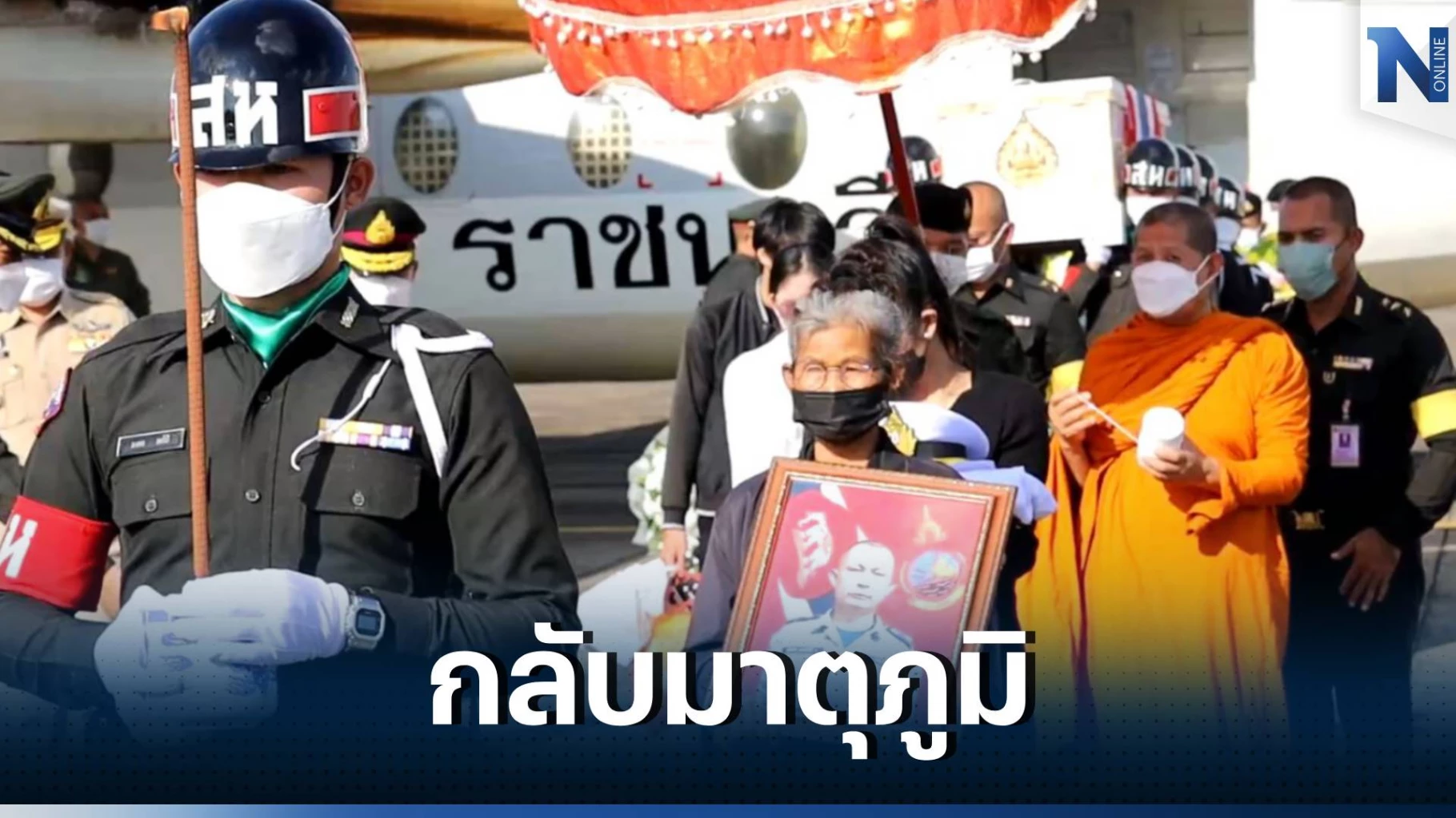 โดยเครื่องบินลำเลียงแบบที่ 1 ฟอกเกอร์ MK 400 กองทัพเรือ นำร่างส่งกลับไปบำเพ็ญกุศลที่บ้านเกิด จังหวัดบึงกาฬ ซึ่งมาพร้อมกับแม่ ภรรยา ลูก และญาติพี่น้องบรรยากาศเป็นไปด้วยความโศกเศร้า