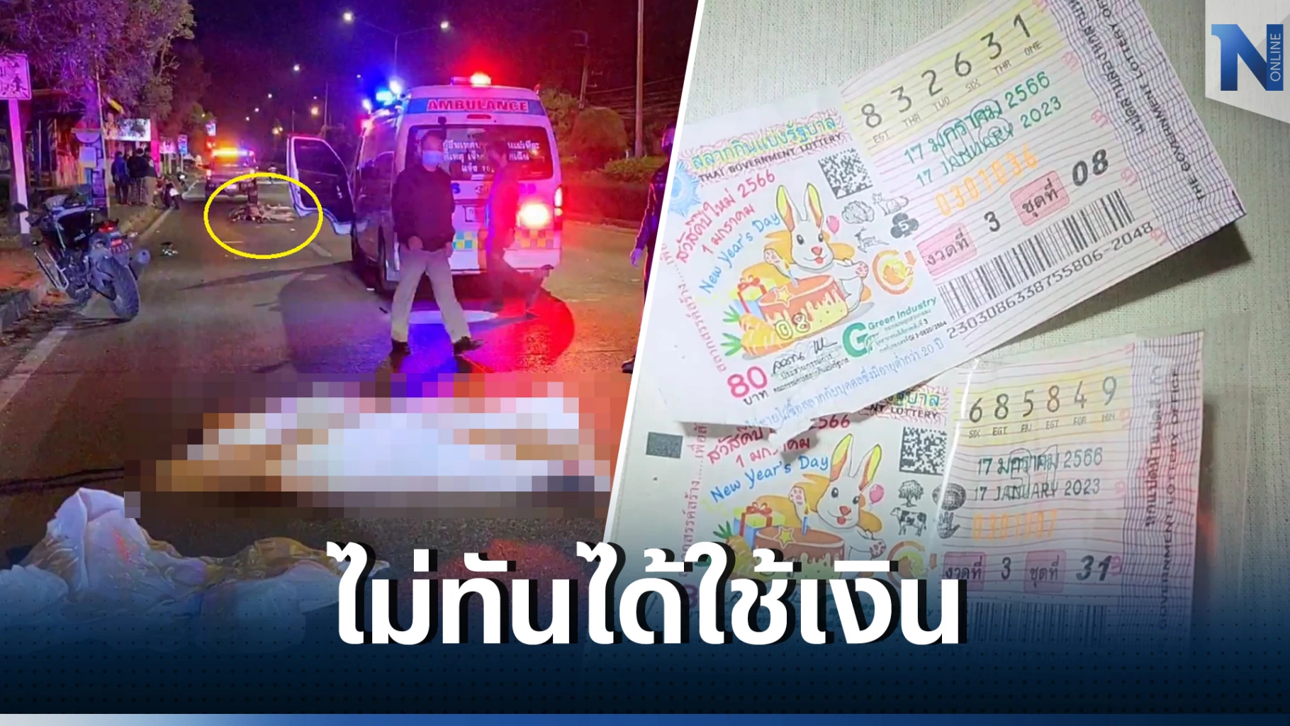 18 มกราคม 2566 หนุ่มถูกลอตเตอรี่ แต่ไม่มีโอกาสได้ใช้เงินรายนี้ หลังประสบอุบัติเหตุเมื่อเวลา 00.30 น. เจ้าหน้าที่ตำรวจสถานีตำรวจภูธรเมืองเชียงใหม่ พร้อมด้วยเจ้าหน้าที่กู้ภัยมูลนิธิรวมใจเชียงใหม่ เข้าตรวจสอบอุบัติเหตุรถจักรยานยนต์ชนเสาไฟฟ้ามีผู้เสียชีวิตเหตุเกิดบริเวณประตูทางออกสำนักงานขนส่งจังหวัดเชียงใหม่ ถนนเชียงใหม่-ฮอด ตำบลแม่เหียะ อำเภอเมืองเชียงใหม่