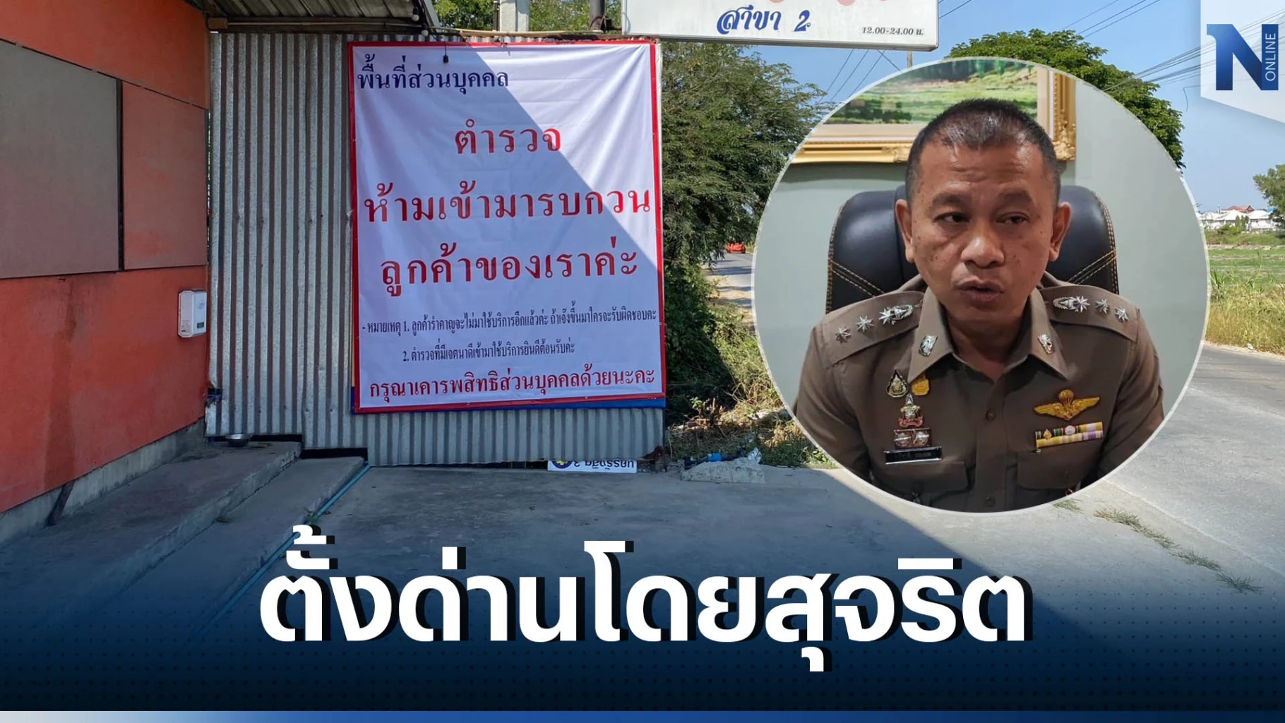 จากรณีเจ้าของสถานตรวจสภาพรถ (ตรอ.) และร้านอาหารลาบร้อยเอ็ด ติดป้ายไวนิลขนาดใหญ่ จำนวน 4 ป้าย มีใจความว่า พื้นที่ส่วนบุคคล ตำรวจห้ามเข้ามารบกวนลูกค้าของเรานะคะ หมายเหตุ 1.ลูกค้ารำคาญจะไม่มาใช้บริการอีกแล้วค่ะ ถ้าเจ๊งขึ้นมาใครจะรับผิดชอบคะ 2.ตำรวจที่มีเจตนาดีเข้ามาใช้บริการ ยินดีต้อนรับค่ะ โดยร้านดังกล่าวตั้งอยู่ในซอยรังสิต - นครนายก 30 ต.ประชาธิปัตย์ อ.ธัญบุรี จ.ปทุมธานี พื้นที่รับผิดชอบ สภ.ประตูน้ำจุฬาลงกรณ์ นั้น