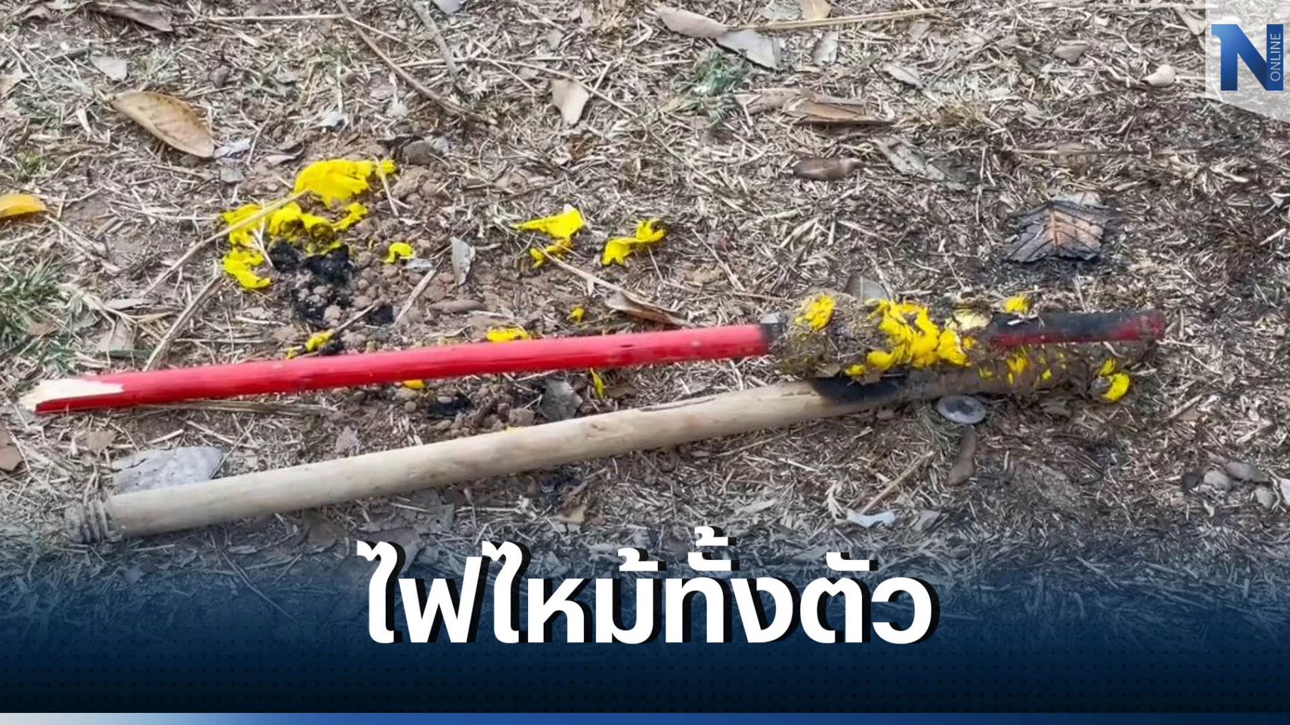 ขณะนั้นมีนักเรียนอีกกลุ่มหนึ่งไปจุดไฟไปก่อนที่ลูกชายของตนจะไปถึง แต่ว่าไฟมันไม่ติด ครูก็เลยบอกให้กลุ่มของลูกชายเป็นคนไปจุดอีก โดยลูกชายของตนเป็นคนถือไฟจะไปจุด พอลูกชายตนไปถึงกองฟืน ไฟก็พุ่งออกมาทันทีแบบตั้งตัวไม่ทัน ทำให้ไฟลุกไหม้เด็กกลุ่มนี้ทันที จำนวน 5 คน