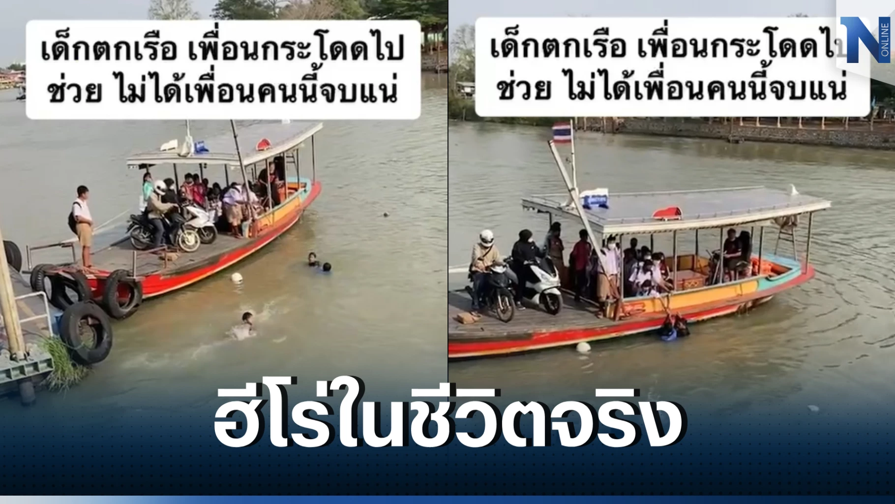 นาทีชีวิต! นักศึกษา ขี่ จยย. พุ่งตกเรือข้ามฟาก เพื่อนและนักเรียนต่างสถาบัน โดดน้ำลงไปช่วยรอดหวุดหวิด ชาวเน็ตพากันชื่นชมฮีโร่ในชีวิตจริง