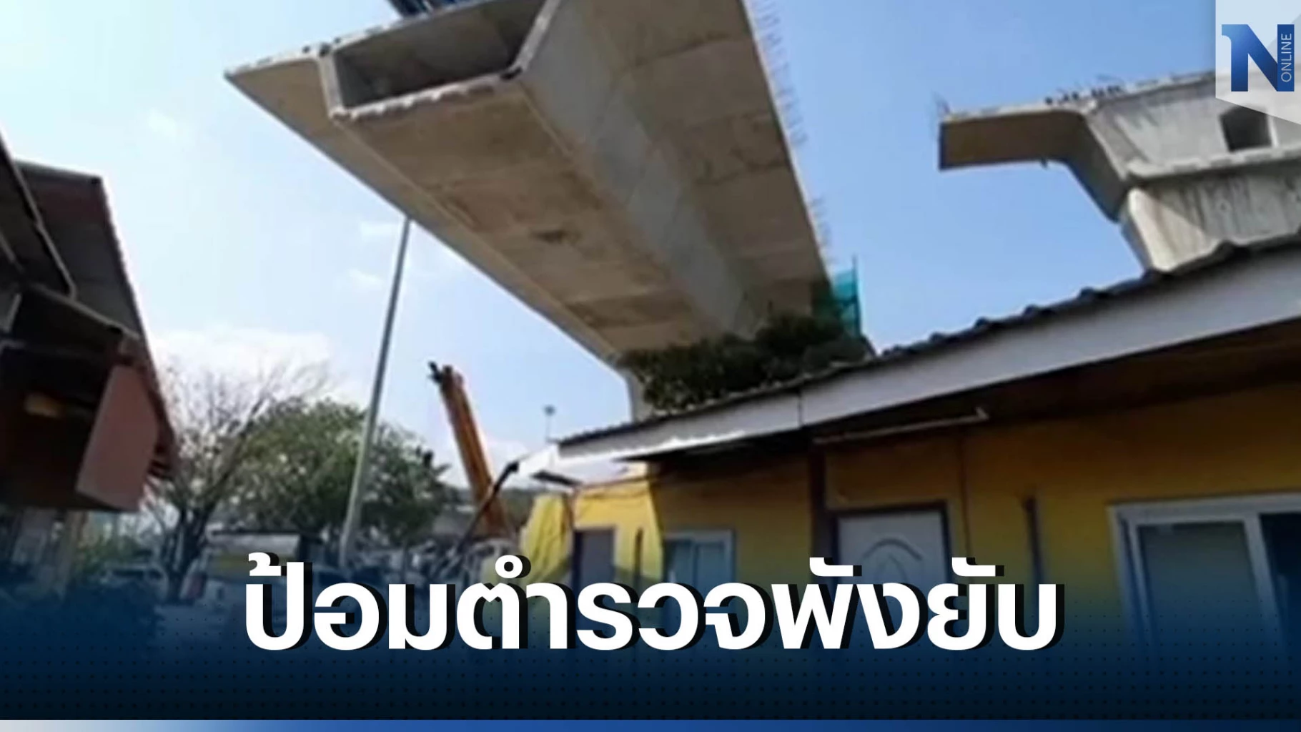 ที่เกิดเหตุพบว่าตู้ยามบริการของตำรวจทางหลวง ถูกคานซีเมนต์น้ำหนัก 40 ตัน หล่นทับห้องวิทยุ ห้องน้ำ และ ลานจอดรถ โดยคานซีเมนต์ดังกล่าวเป็นคานรองรับน้ำหนักของงานก่อสร้างโครงการทางหลวงพิเศษระหว่างเมือง สายบางใหญ่-กาญจนบุรี (M81)