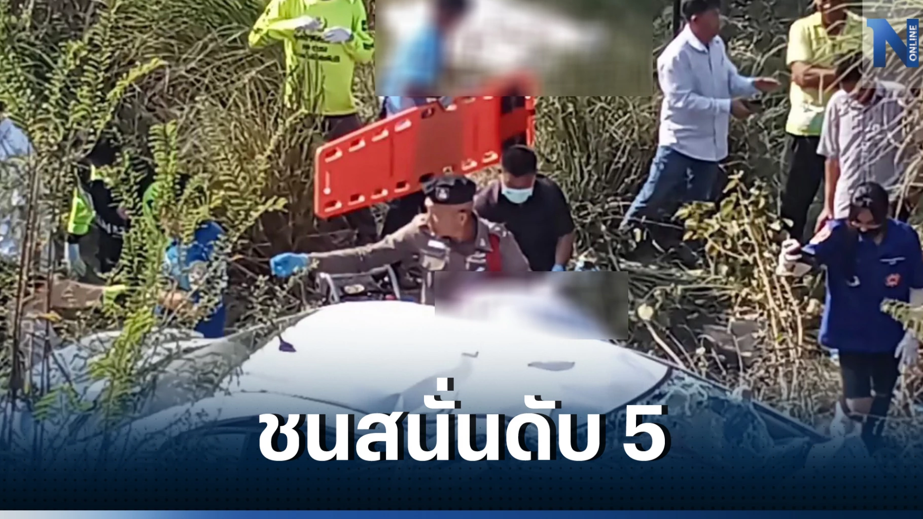 ในที่เกิดเหตุ รถเก๋งฮอนด้าสีขาว ทะเบียนจังหวัดอุบลราชธานี พบศพผู้เสียชีวิตเป็นหญิงจำนวน 3 ศพ ประกอบด้วย
