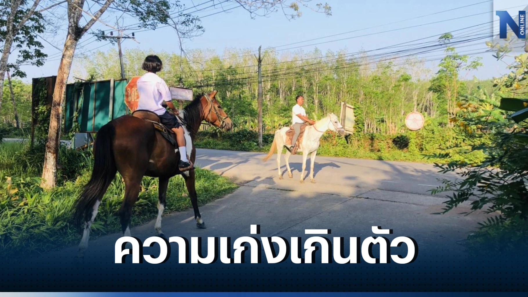 8 มีนาคม 2566 ผู้สื่อข่าวเดินทางไปที่บ้านหลังหนึ่ง ต.ละมอ อ.นาโยง จ.ตรัง พบ ด.ญ สุกัลย์ชนก หรือ น้องหยก อายุ 10 ขวบ นักเรียนชั้นป.4 โรงเรียนบ้านทุ่งส้มป่อย อ.นาโยง จ.ตรัง กำลังขึ้นขี่ม้าลูกผสมสีขาวหม่น อายุประมาณ 6 ปี เพื่อไปเรียนหนังสือ โดยระยะทางจากบ้านไปโรงเรียนเกือบ 3 กิโลเมตร โดยมีนายจิระพงษ์ ชัยทอง อายุ 49 ปี ผู้เป็นพ่อ ขี่ม้าสีน้ำตาล-ดำ ตามประกบ เพื่อระวังรถเวลาข้ามถนนให้กับลูกสาว