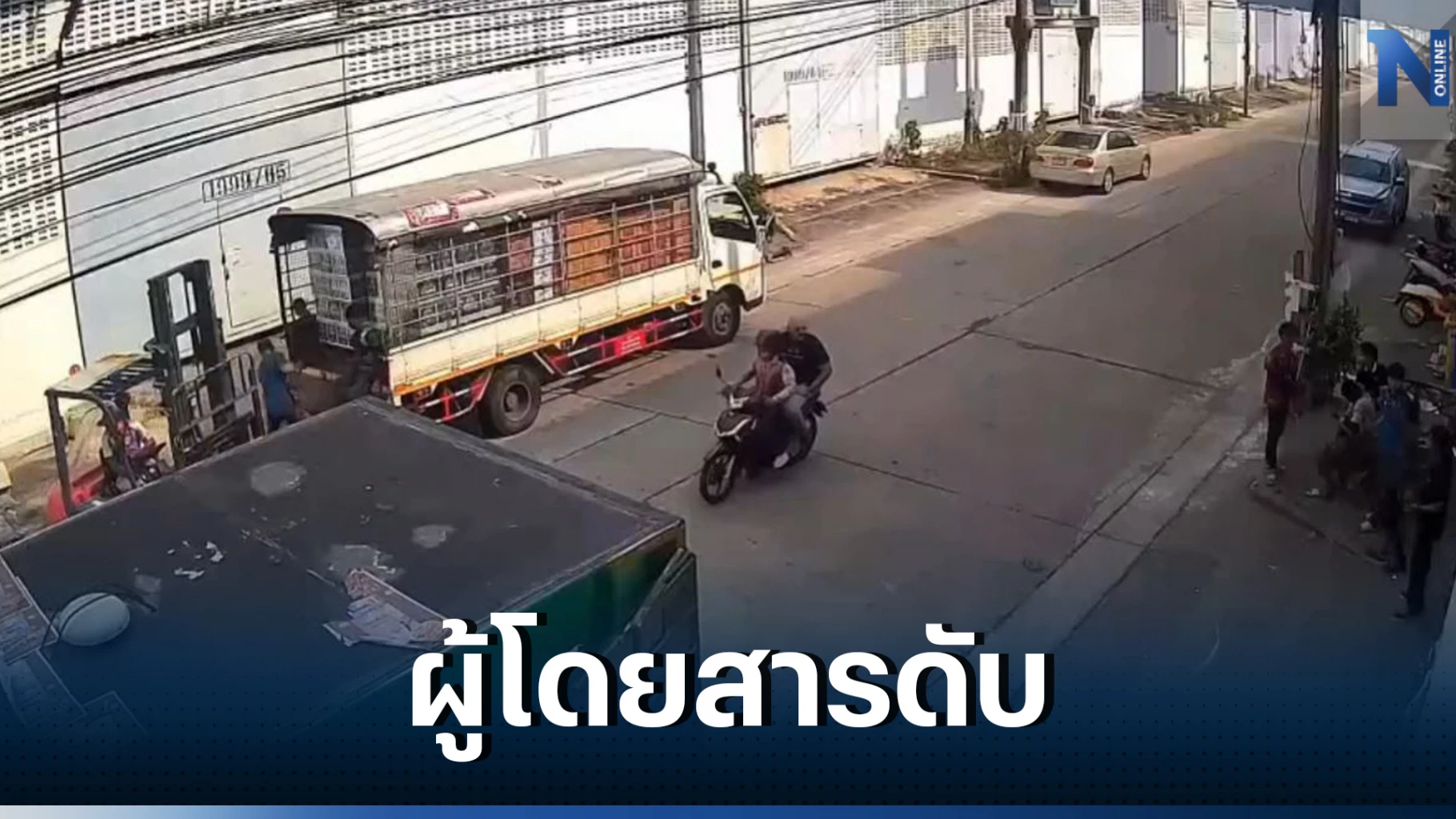 จากการตรวจสอบกล้องวงจรปิดบริเวณหน้าโกดัง เผยให้เห็นภาพขณะที่รถโฟล์คลิฟท์คันหนึ่งได้นำสินค้าจากท้ายรถบรรทุกที่จอดฝั่งตรงข้ามโกดัง จังหวะที่กำลังขับข้ามไปเข้าโกดัง มีรถจักรยานยนต์รับจ้าง ซึ่งมีนักธุรกิจชาวอิตาลีนั่งซ้อนท้ายมา ได้พุ่งชนเข้าที่งายกสินค้าของรถโฟล์คลิฟท์อย่างจัง จนทำให้รถล้ม มีผู้ได้รับบาดเจ็บ และเสียชีวิต นอนกลางถนน