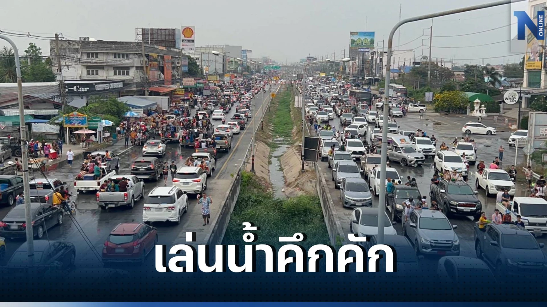 ส่วนการเล่นน้ำสงกรานต์ ทางเทศบาลเมืองแสนสุข และตำรวจ สภ.แสนสุข ได้กำหนดพื้นที่ให้ประชาชน และนักท่องเที่ยวมาเล่นสาดน้ำกันได้อย่างเต็มที่คือ บริเวณถนนสายข้าวหลาม ทำให้นักท่องเที่ยวหลั่งไหลมาเล่นสาดน้ำกันอย่างสนุกสนาน รวมทั้งยังมีการนำเครื่องเสียงมาเปิดเพลงสร้างบรรยากาศ ส่งผลให้ถนนสายข้าวหลาม 2 ฝั่งการจราจรติดขัด