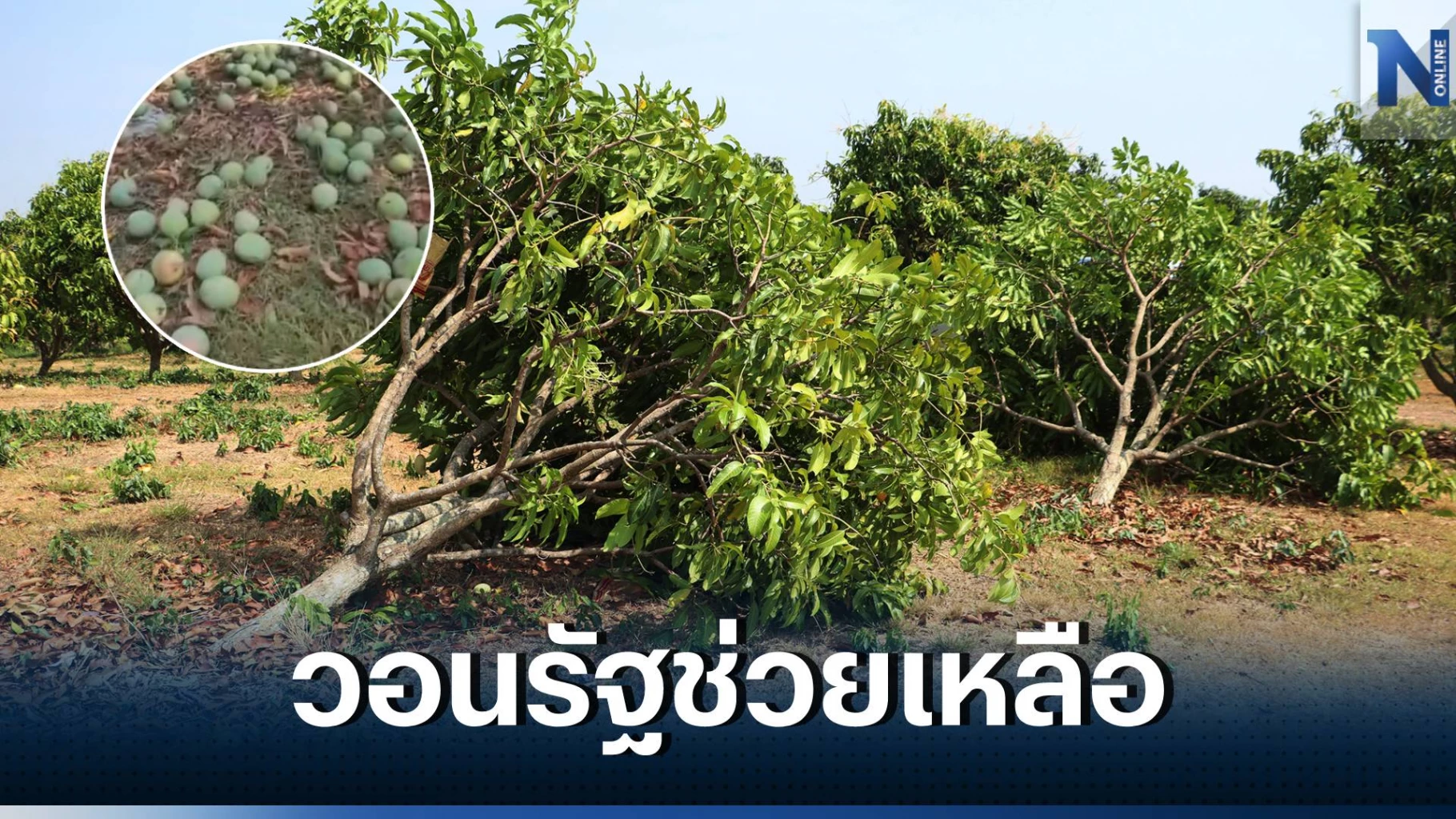 มะม่วงน้ำดอกไม้สีทองเพื่อการส่งออกขายอยู่ กก.ละ 60 บาท , มะม่วงฟ้าลั่น เขียวเสวยใหญ่ มะม่วงอาร์ทูอี และอีกหลายพันธุ์ ที่มีออเดอร์ส่งออกและขายภายในประเทศ ซึ่งอยู่บนต้นมะม่วงกำลังแก่จัดและกำลังจะเก็บผลผลิตขายได้อยู่แล้ว แต่ต้องมาโชคร้ายเงินแสน เงินล้าน หายวับไปกับตาเมื่อเจอพายุฤดูร้อนพัดกระหน่ำทำผลผลิตเสียหายเกือบ 70% ของผลผลิตที่เสียหายร่วงหล่นขายไม่ได้ต้องทิ้งหรือแจกฟรีอย่างเดียว